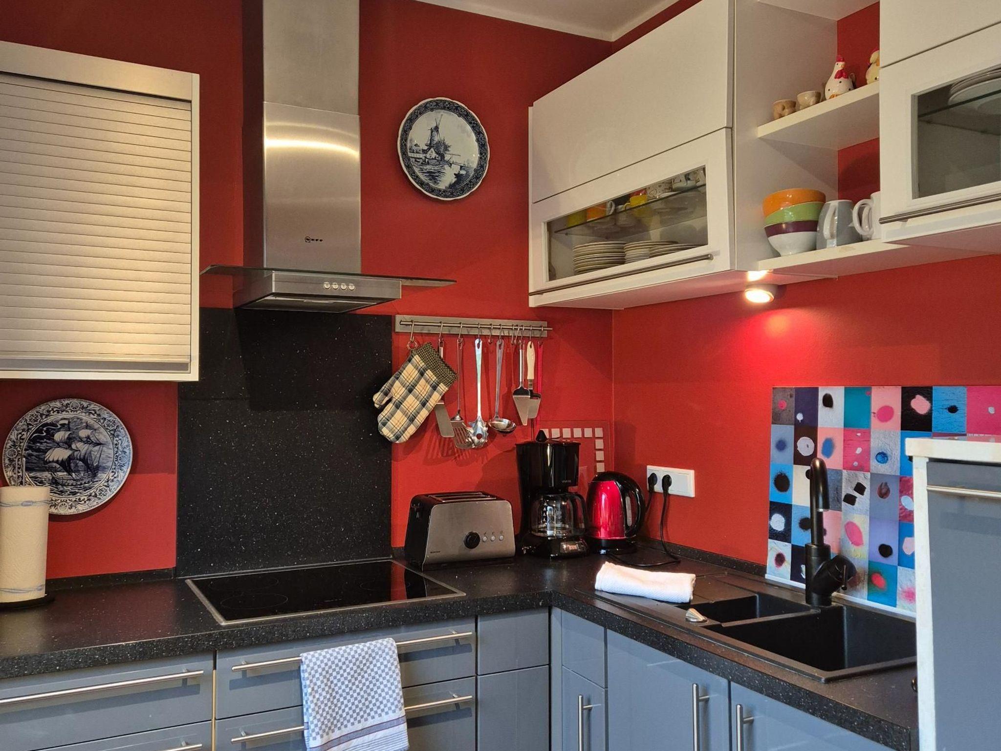 Küche / Haushalt: Backofen, Bügelbrett und -eisen, Filterkaffeemaschine, Gefrierfach, Geschirrspüler, Mikrowelle, Waschmaschine.