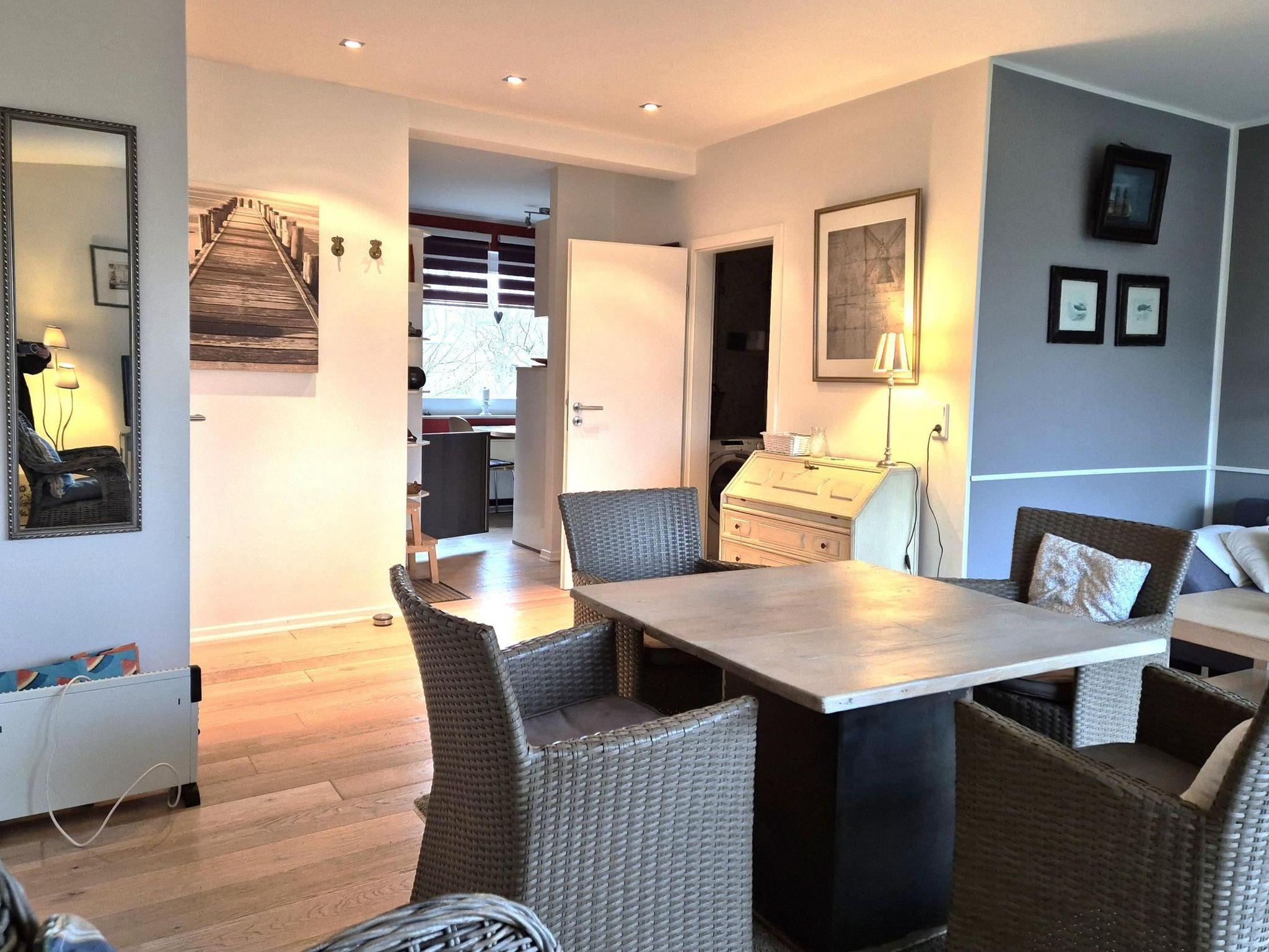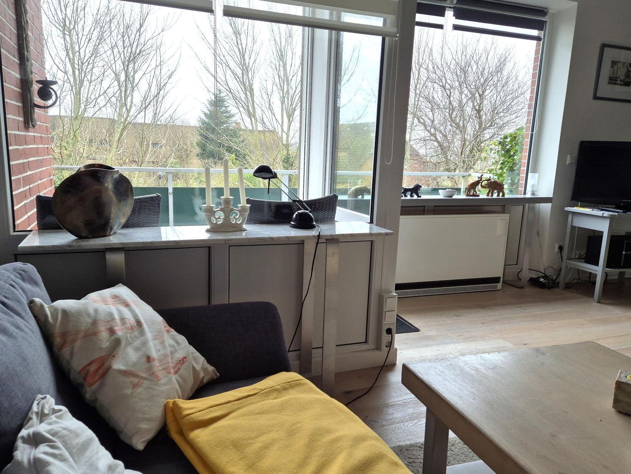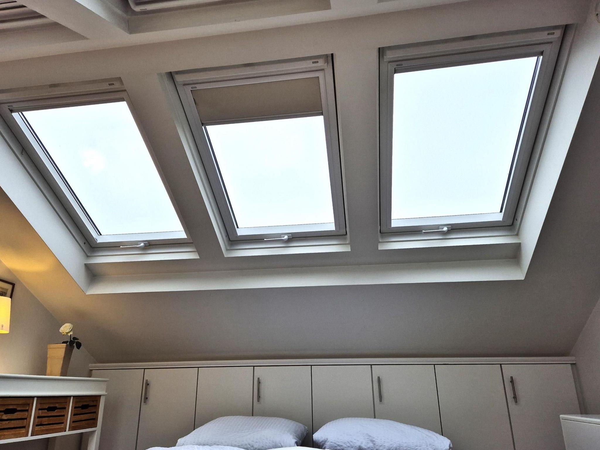 starten Sie in den Urlaub auf der Insel Föhr in unserer wunderschönen und liebevoll ausgestatteten Ferienwohnung für zwei Personen in Midlum, In de Marsch 73.Die Wohnung im Maisonette Stil ist im Obergeschoss mit einem Schlafzimmer mit sechs großen Veluxfenstern und separatem WC ausgestattet.