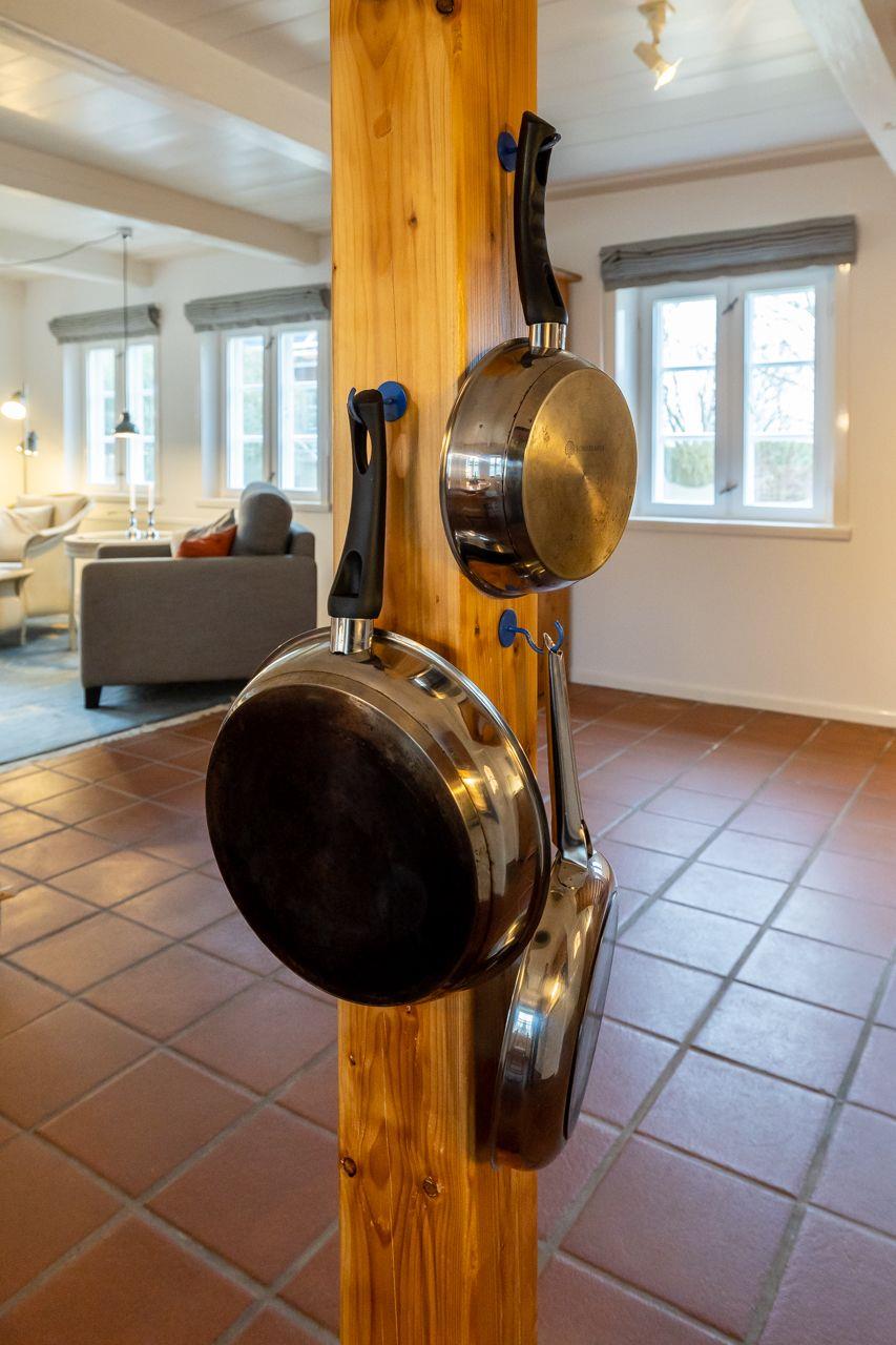 Die voll ausgestattete Küche ist ideal für Hobbyköche, die während des Urlaubs schmackhafte Gerichte zubereiten möchten. Es stehen Ihnen moderne Küchengeräte, wie ein Cerankochfeld, ein Backofen sowie eine Spülmaschine zur Verfügung. Die offenen Küchenutensilien und Gewürze sorgen dafür, dass Sie sich ganz entspannt ums Essen kümmern können. Der angrenzende Essbereich bietet ausreichend Platz für gemeinsame Mahlzeiten und gesellige Runden.