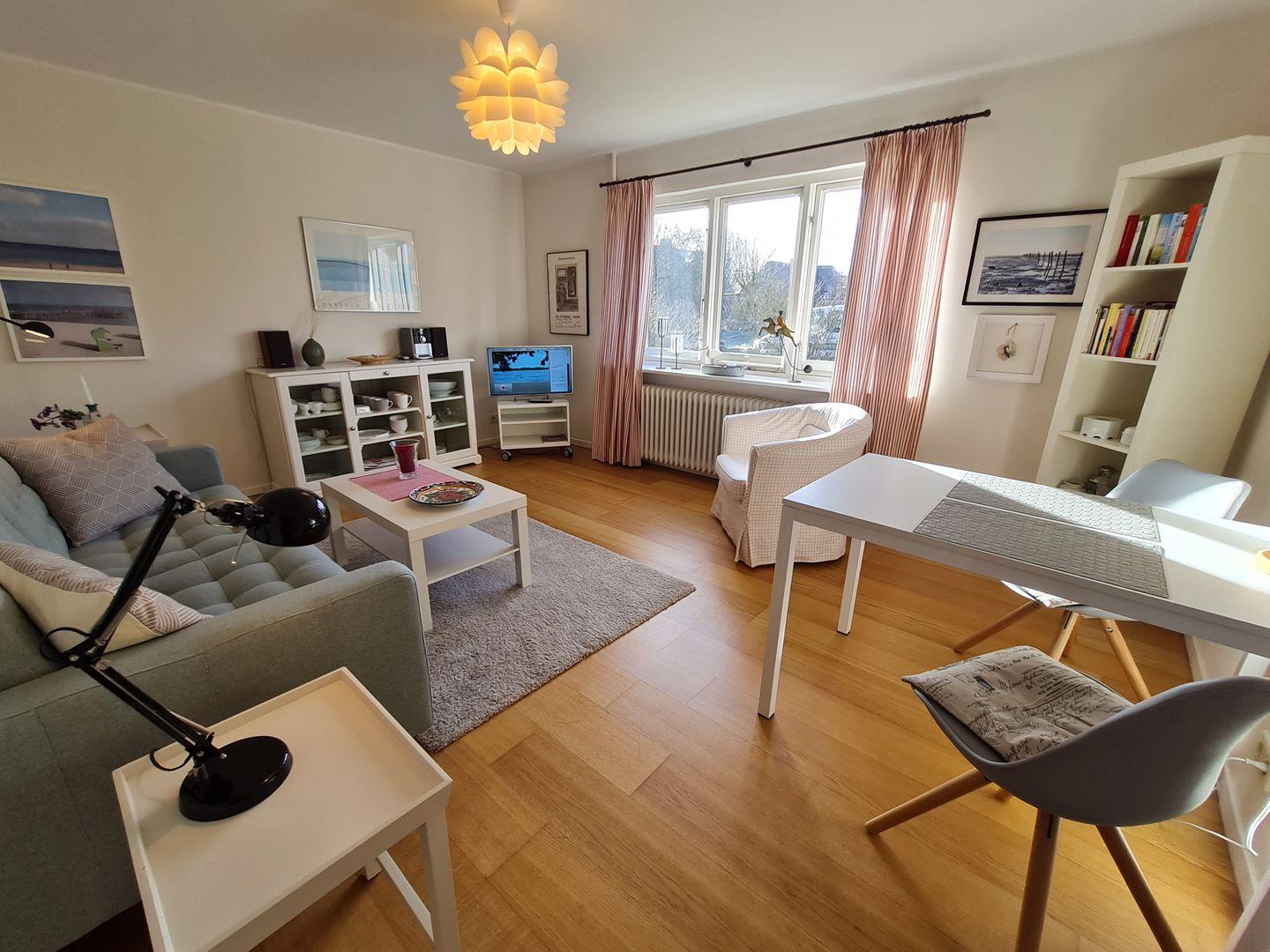 Die ebenerdig gelegene, moderne, allergikerfreundliche 2-Zi.-Ferienwohnung liegt in einer ruhigen Seitenstraße von Midlum. Die liebevolle Einrichtung und die gelungene Farbkomposition lassen diese Wohnung zur "Wohlfühloase" werden. Sie besteht aus einem Flur, Duschbad, kleiner offener Küche, einem Wohn- und einem Schlafzimmer – beide mit herrlichem Blick in den gepflegten Garten. Die geschützt liegende Sonnenterrasse liegt im eigenen kleinen Garten. Im hellen, geschmackvoll eingerichteten Wohnzimmer finden Sie für die Unterhaltung einen SAT-TV, Radio, CD Player und einige Bücher. Zur Verfügung steht Ihnen ebenfalls ein kostenloser WLAN-Anschluss. Die offene Küche ist mit einem 2-Platten-Cerankochfeld, Kühlschrank, Geschirrspüler, Kaffeemaschine und Wasserkocher ausgestattet. In dem gemütlichen Schlafzimmer finden Sie außer einem Doppelbett (zwei getrennte Matratzen je 90 x 200 cm) auch einen geräumigen Kleiderschrank vor. Bettwäsche und Handtücher werden einmalig kostenlos bereit gestellt. Das moderne begehbare Duschbad verfügt über ein kleines Fenster, eine Dusche mit Glaswand, ein Waschbecken, ein WC und einen Föhn.