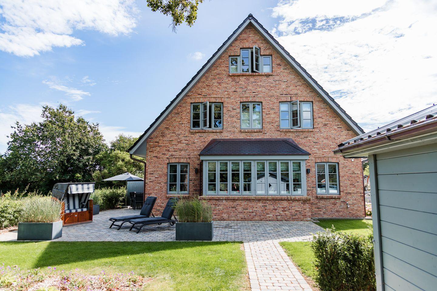 Hochwertig ausgestattete Doppelhaushälfte mit Sauna, Kamin, Garten und Strandkorb auf der Terrasse.