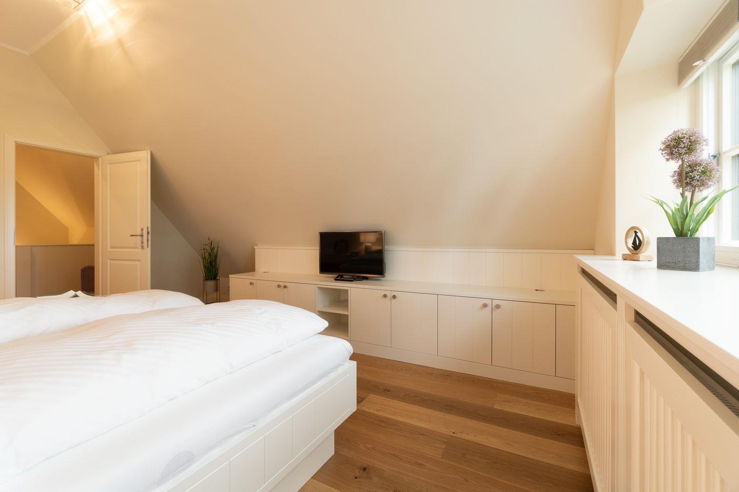 Im Dachgeschoss steht Ihnen ein weiteres Schlafzimmer mit einem Doppelbett und einem begehbaren Schrank zur Verfügung.