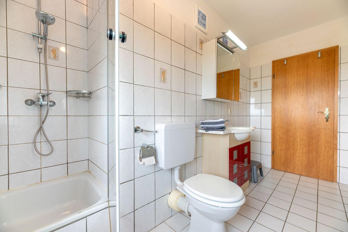 Über den Hofplatz erreichen Sie den Hausflur, der zu den Ferienwohnungen 1-3 im Obergeschoss führt. Diese Ferienwohnung umfasst einen Flur, ein Duschbad mit WC, eine offene Wohnküche sowie zwei Schlafzimmer.