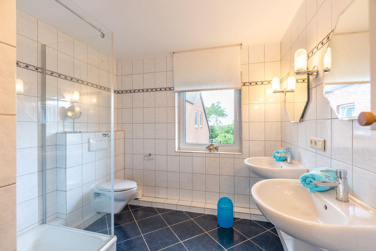 Über den Hofplatz erreichen Sie den Hausflur, der zu den Ferienwohnungen 1-3 im Obergeschoss führt. Diese Ferienwohnung umfasst einen Flur, ein Duschbad mit WC und zwei Waschbecken, eine offene Wohnküche sowie zwei Schlafzimmer.