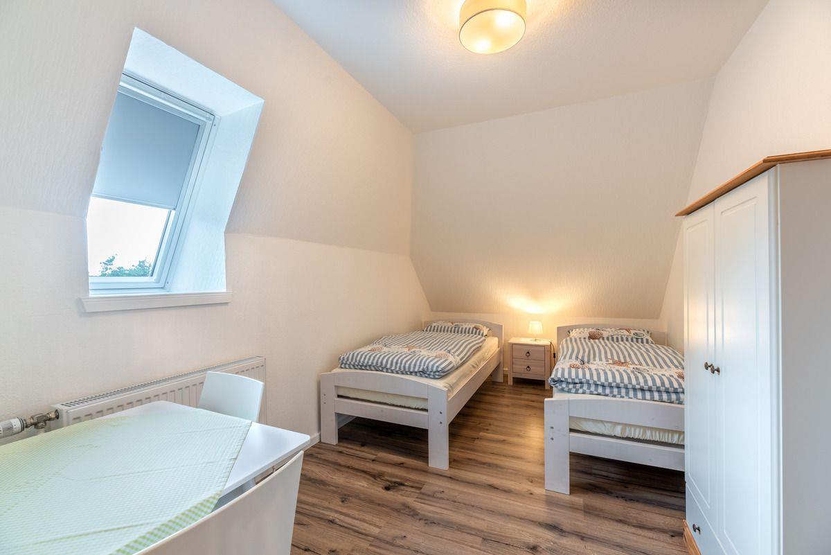 Im Nebengebäude des großen Hofes gelangen Sie in den Hausflur, der zu den Ferienwohnungen 4 bis 6 führt. Diese Ferienwohnung bietet eine offene Wohnküche, zwei Schlafzimmer sowie ein Duschbad mit WC. Darüber hinaus steht ein Balkon zur Verfügung, der gemeinsam mit der Ferienwohnung 5 genutzt werden kann; jede Wohnung ist jedoch mit eigenen Sitzgelegenheiten auf dem Balkon ausgestattet.