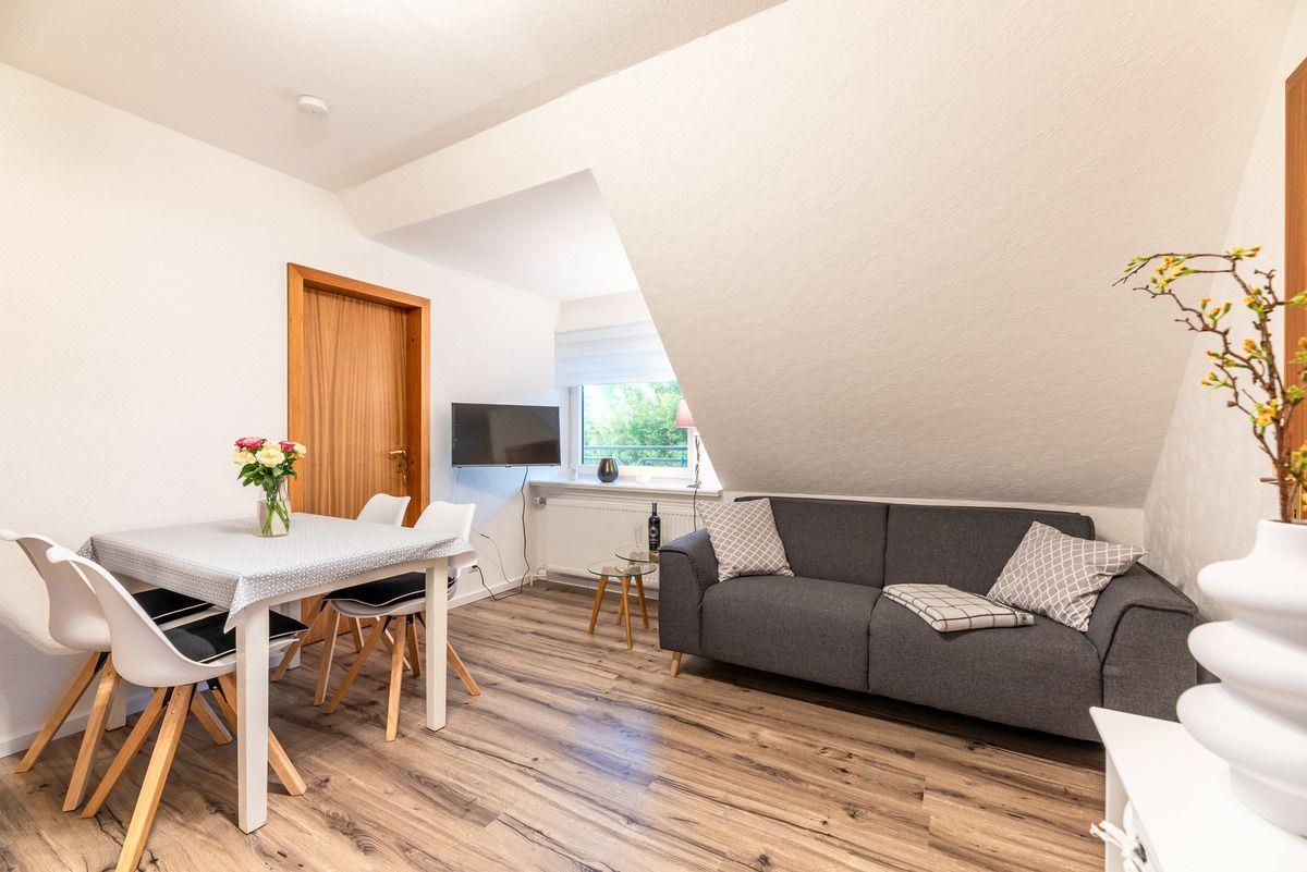Willkommen im Ferienhof Bruhn "Nr. 4", Ihrem idyllischen Rückzugsort inmitten der idyllischen Landschaft von Midlum. Diese bezaubernde Ferienwohnung mit einer großzügigen Größe von 45 m² bietet Platz für bis zu vier Personen und ist der perfekte Ort für Familien, Paare oder aktive Abenteuerlustige. Auf dem Anwesen befinden sich insgesamt 6 Ferienwohnungen.