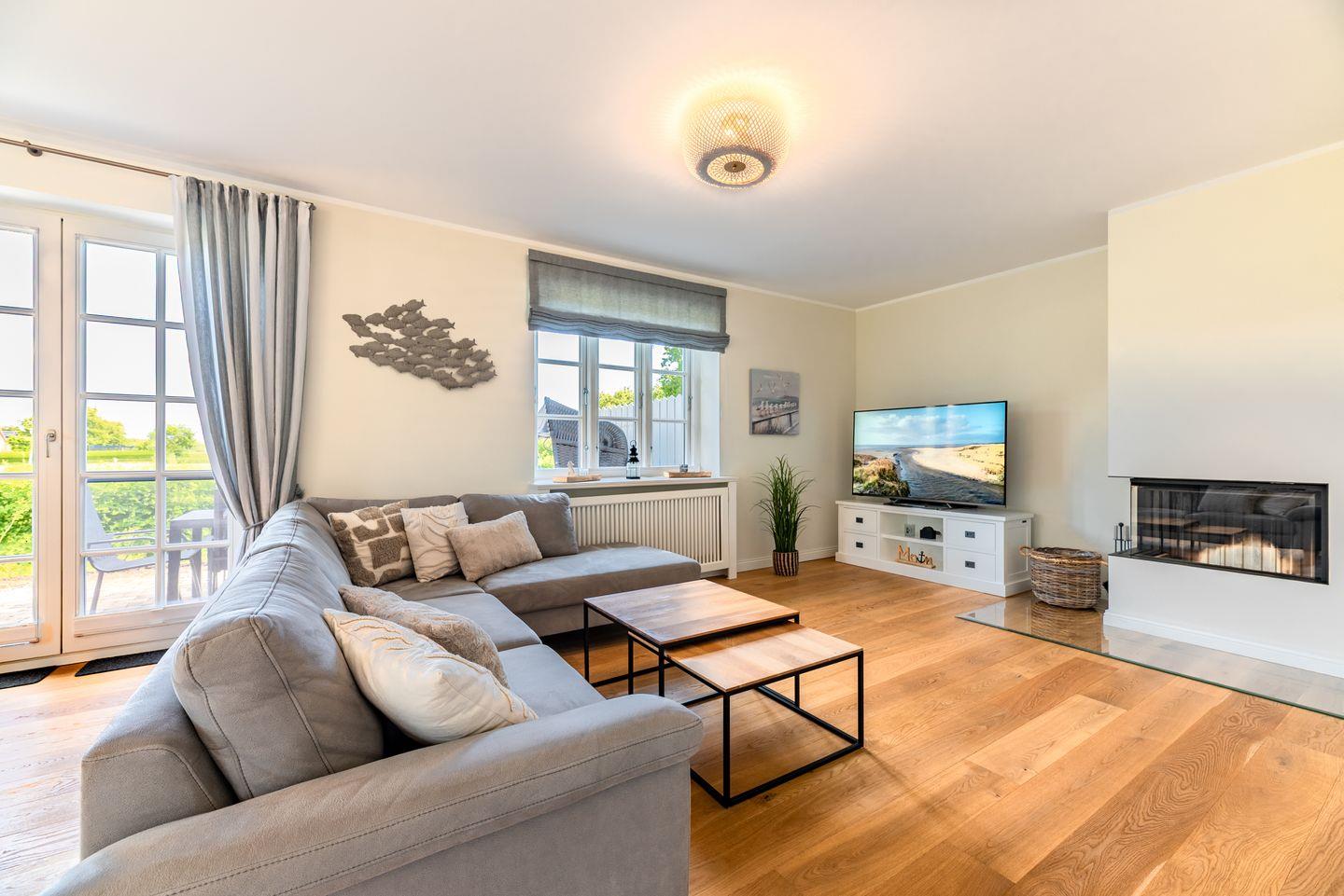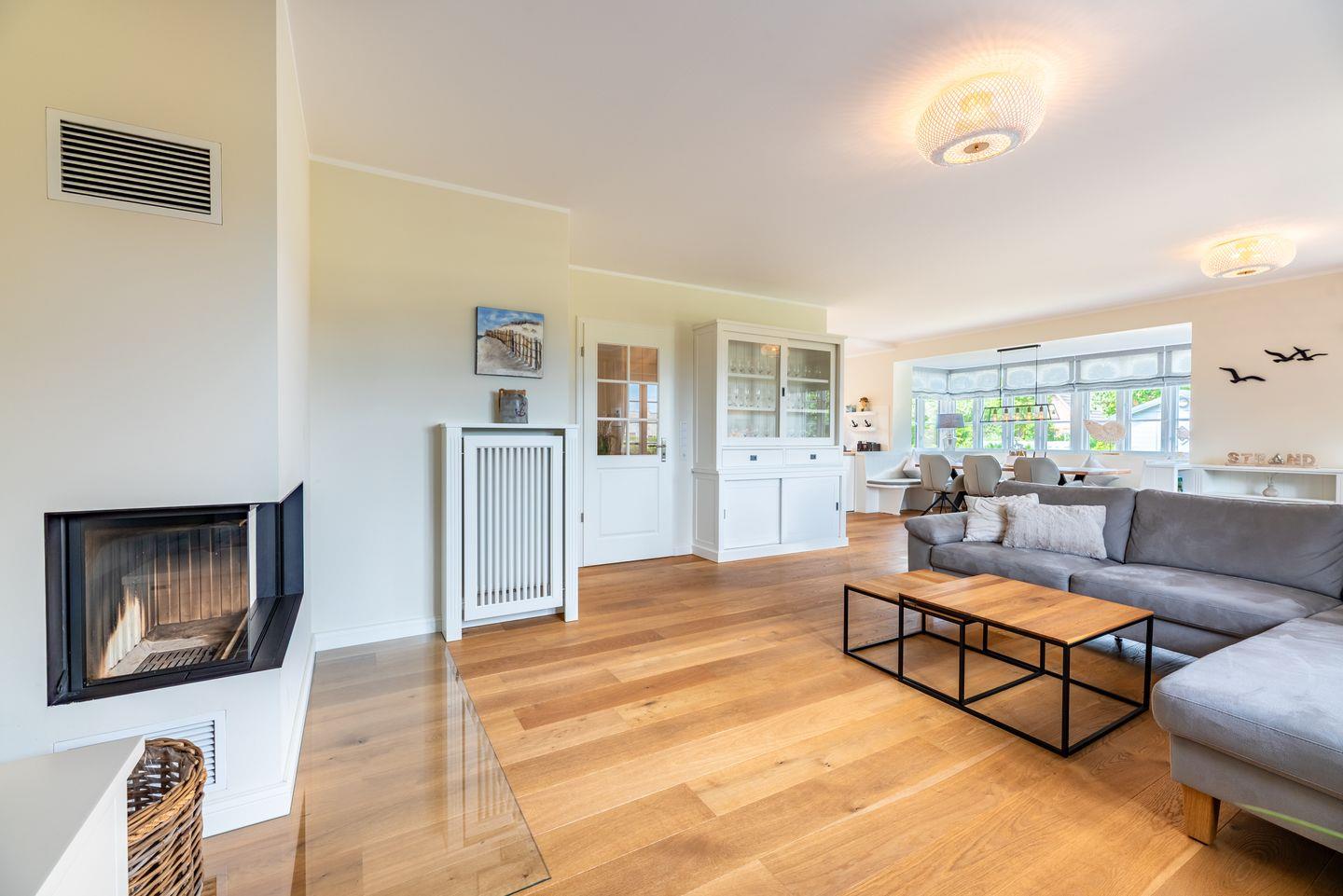 Hochwertig ausgestattete Doppelhaushälfte mit Sauna, Kamin, Garten und Strandkorb auf der Terrasse.