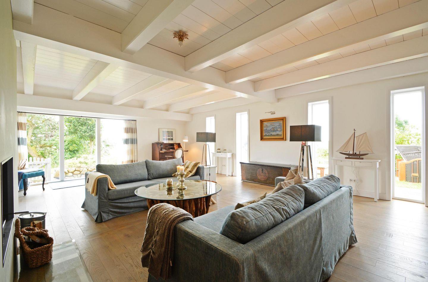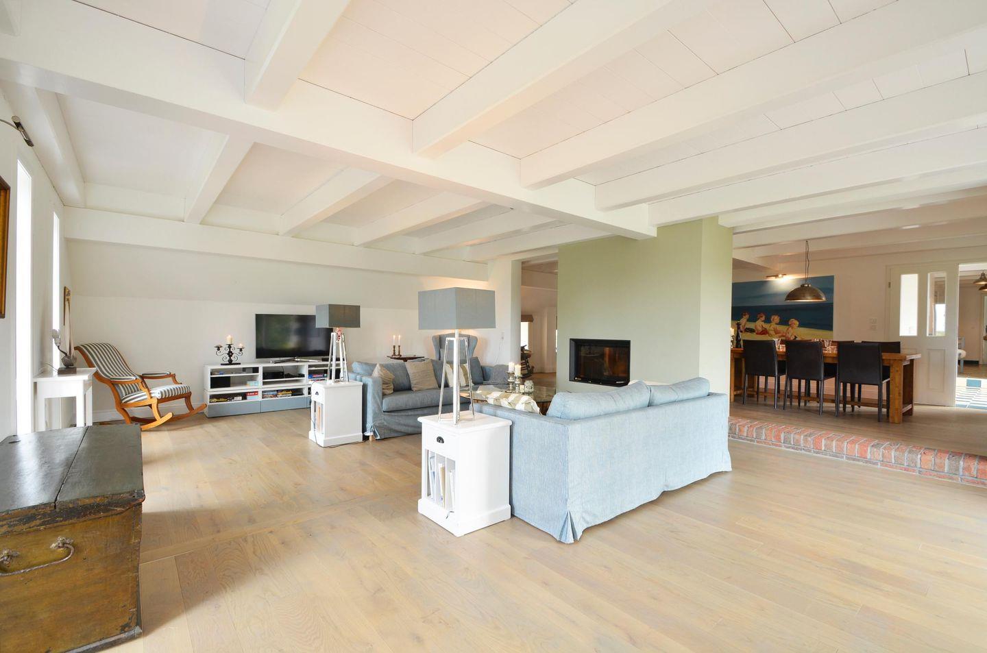 Lieben Sie die Weite der Marsch und modernen Komfort, traditionellen Landhausstil und zeitgenössisches Scandi-Design? Dann sind Sie im Reethus Dörpsend genau richtig! Die alte Hofstelle am Eingang zur Midlumer Marsch wurde in den vergangenen Jahren mit viel Liebe zum Detail umgebaut. Entstanden sind zwei äußerst großzügige Häuser mit neuen und antiken Möbeln, offenem Kamin bzw. Kachelofen, je fünf Schlafzimmern, 4 Bädern und eigener Sauna. Verbringen Sie einen wunderschönen Urlaub in diesen modernen, über 300m² großen Häusern.