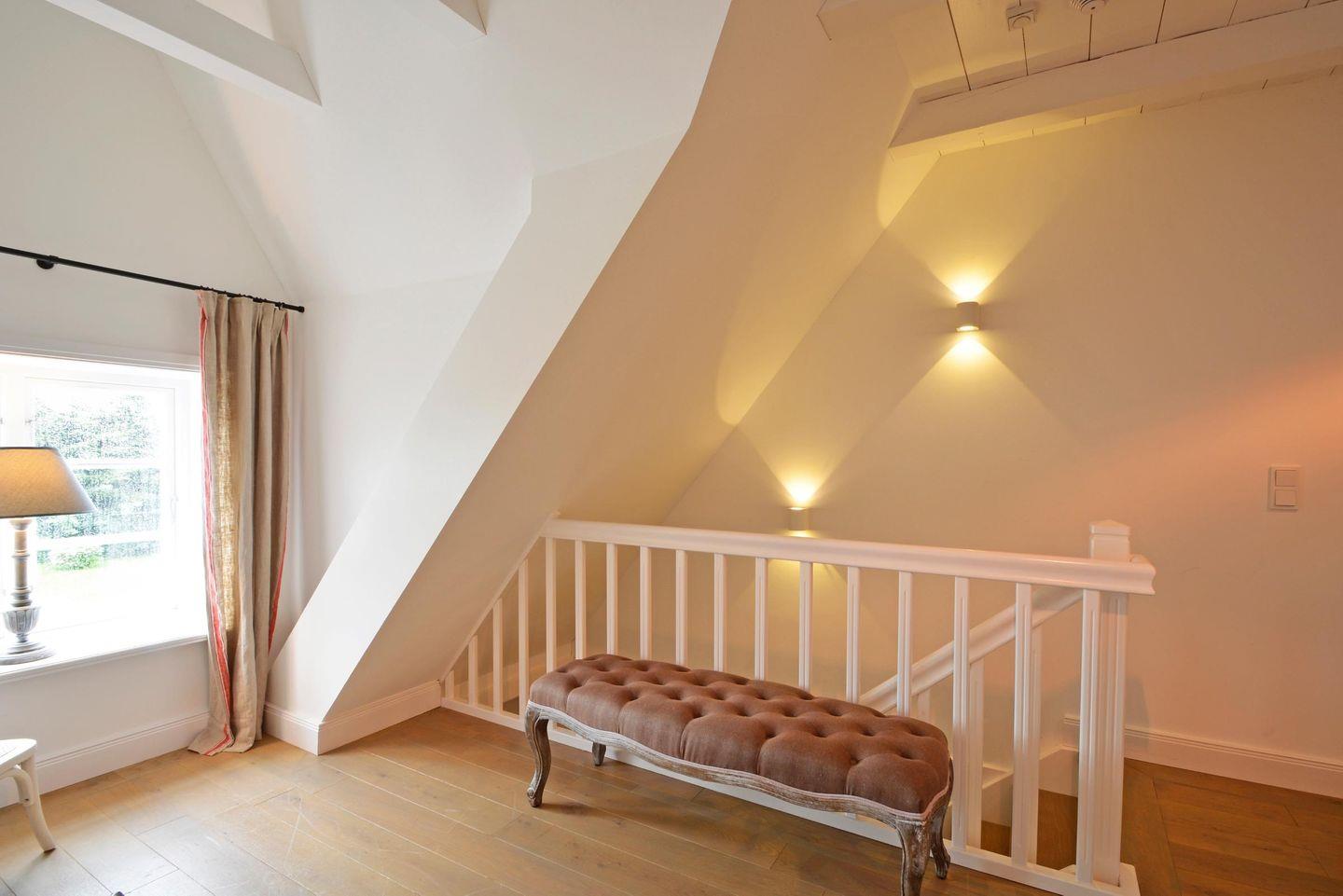 Lieben Sie die Weite der Marsch und modernen Komfort, traditionellen Landhausstil und zeitgenössisches Scandi-Design? Dann sind Sie im Reethus Dörpsend genau richtig! Die alte Hofstelle am Eingang zur Midlumer Marsch wurde in den vergangenen Jahren mit viel Liebe zum Detail umgebaut. Entstanden sind zwei äußerst großzügige Häuser mit neuen und antiken Möbeln, offenem Kamin bzw. Kachelofen, je fünf Schlafzimmern, 4 Bädern und eigener Sauna. Verbringen Sie einen wunderschönen Urlaub in diesen modernen, über 300m² großen Häusern.