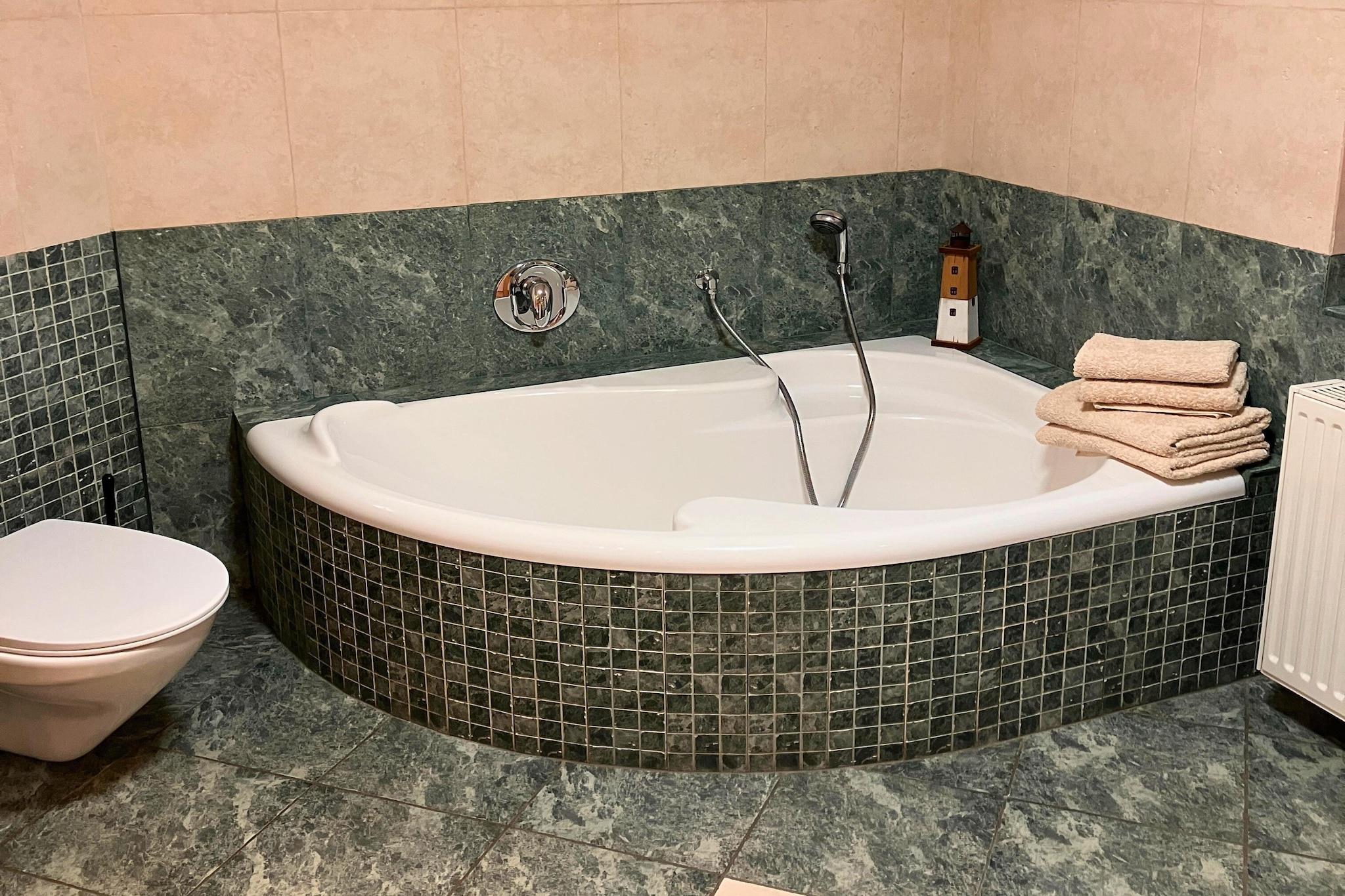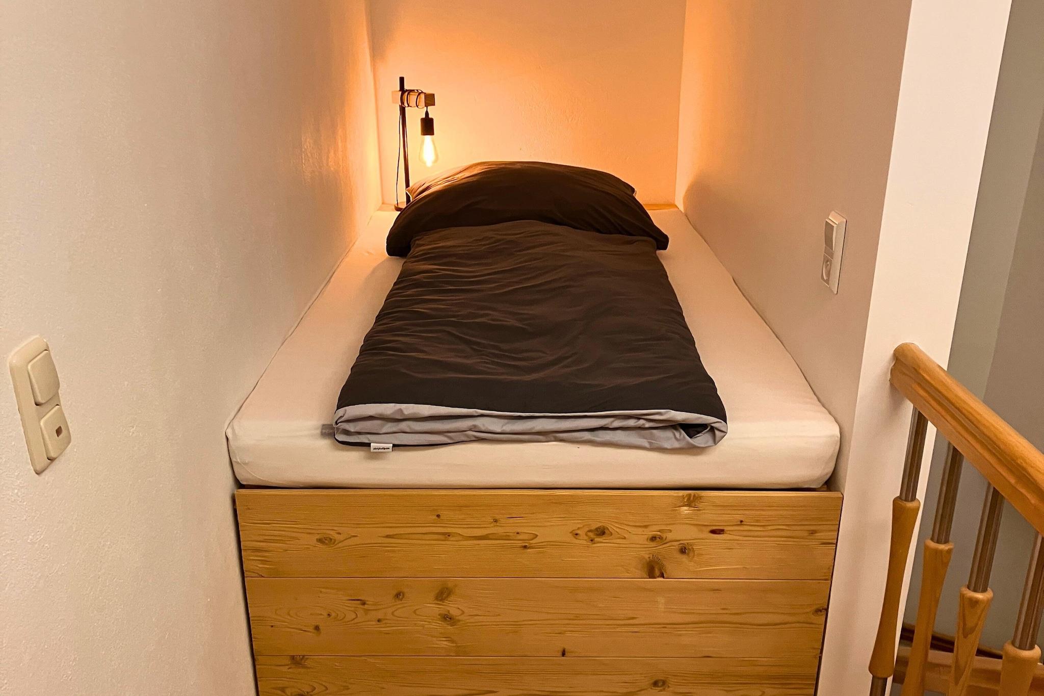 Ferielejligheden på øverste etage er ideel til familier. Lejligheden er moderne og møbleret til en høj standard. Den er 80 m² stor og har to gange, en opholdsstue, en kombineret stue og køkken, et soveværelse og et badeværelse. Ovenpå gangen er der et arbejdsområde og en sovealkove. Både opholdsstuen og soveværelset har fjernsyn. Pejsen i opholdsstuen er drevet af miljøvenlige træpiller, som kan fås efter anmodning. Om sommeren er den møblerede balkon perfekt til afslapning på lange sommeraftener. Det fuldt udstyrede køkken har en morgenmadsbar og et spisebord. Sovearrangementerne er meget fleksible. Soveværelset har to enkeltsenge og to udtrækssenge til yngre børn. Sovelkoven i gangen er ideel til et ældre barn. Alternativt kan sofaen i stuen laves om til en seng til to personer. Masser af fleksible muligheder for en familie! En parkeringsplads på ejendommen er gratis tilgængelig. Bemærk venligst, at det indre af denne ferielejlighed IKKE er tilgængeligt for kørestolsbrugere. Babyudstyr er tilgængeligt efter anmodning. Legepladsen i haven kan benyttes på eget ansvar. Forældre er ansvarlige for deres børn. Dyr af nogen art er desværre ikke tilladt. Rygning er kun tilladt udendørs.