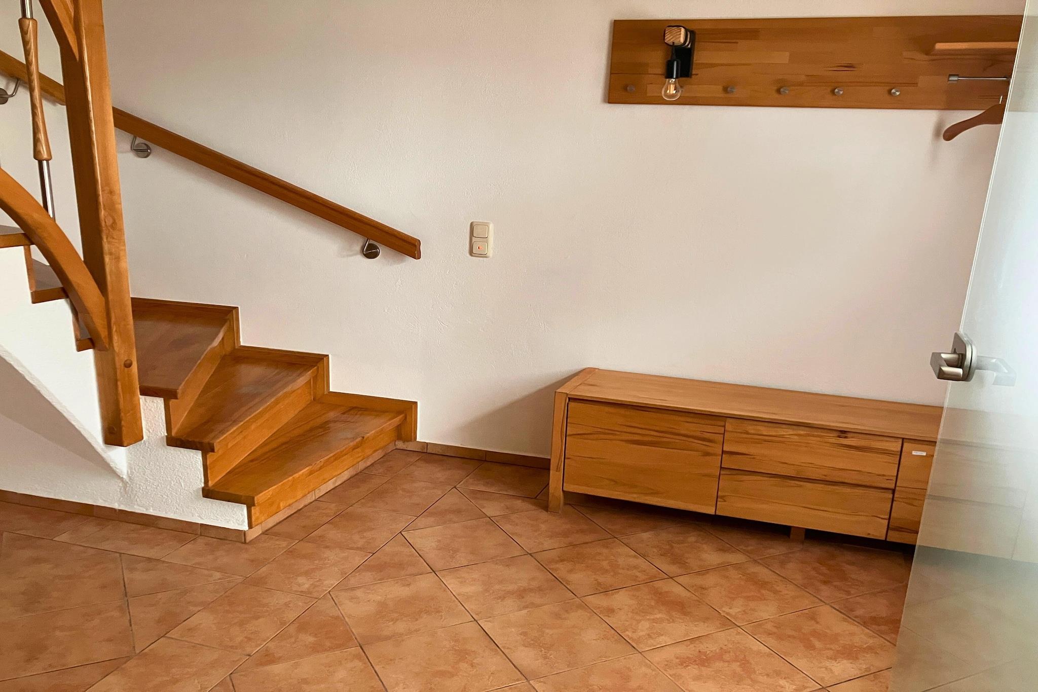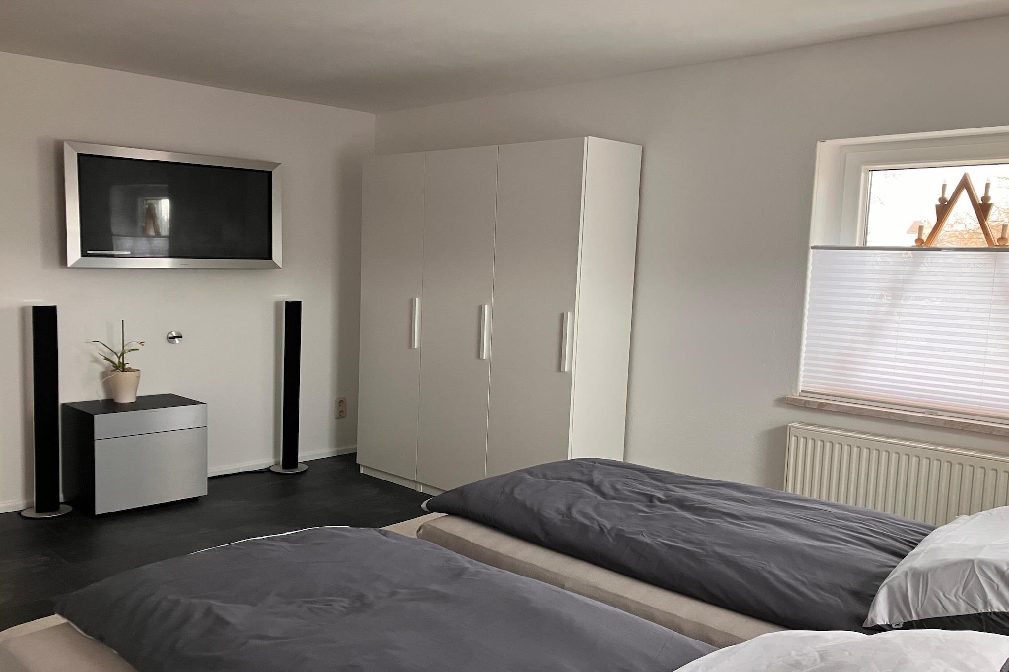 På 1. etage: (Stue(dobbeltsovesofa, Fjernsyn, pejs), åbent køkken(spisebord, elkedel, brødrister, komfur, kaffemaskine, ovn, mikrobølgeovn, opvaskemaskine , køleskab), soveværelse(feltseng, feltseng, dobbeltseng eller 2 enkeltsenge Senge, Fjernsyn), soveniche(enkeltseng), badeværelse(badekar, bruser, håndvask, toilet, føntørrer), balkon) Parkering, tremmeseng, terrasse, have, havemøbler, grill, trampolin, Puslepude, barnestol, Gyngestativ