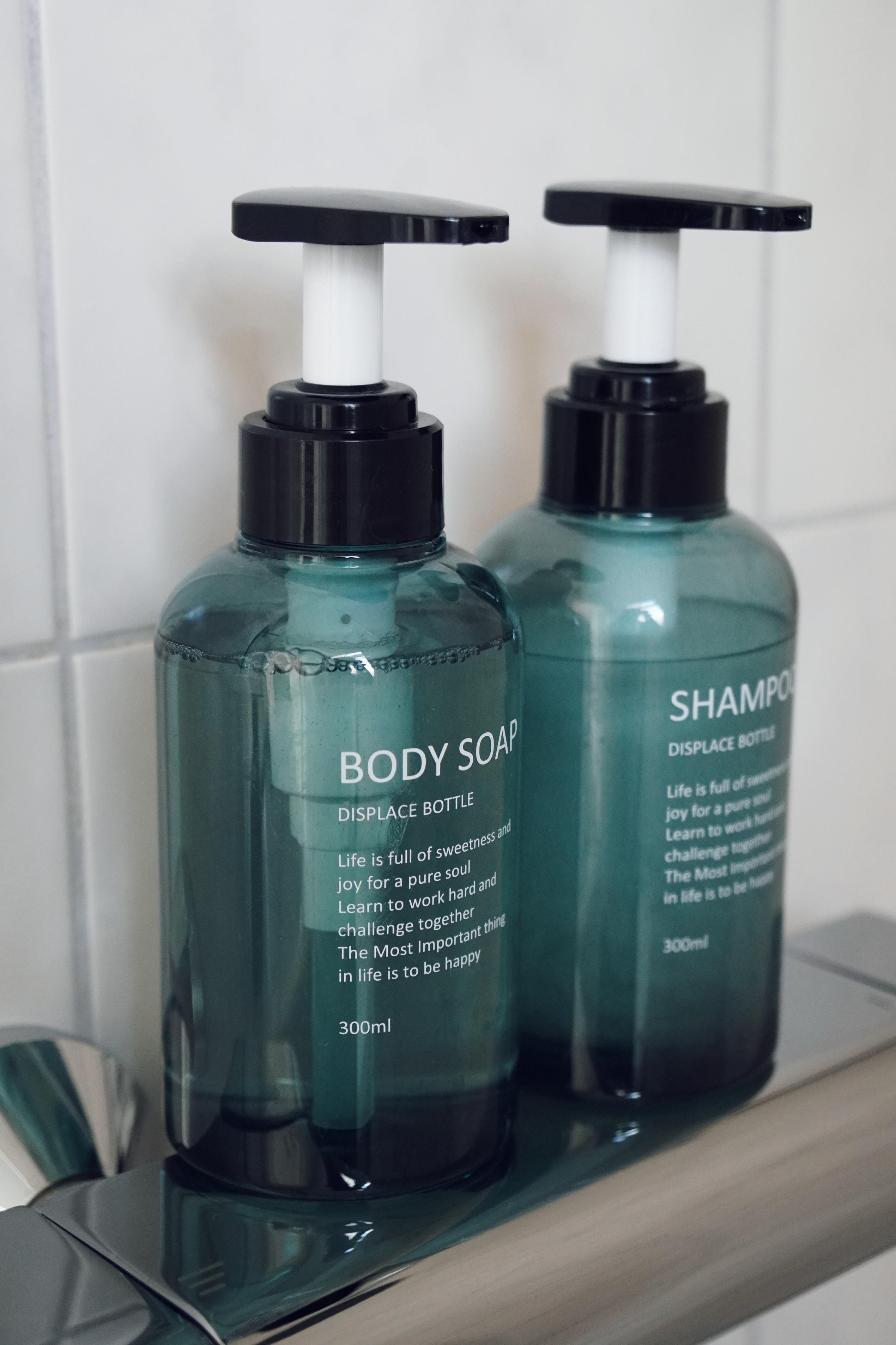 Komfortfaciliteter på badeværelset (hårtørrer, shampoo, hårbalsam, håndsæbe og brusegel)