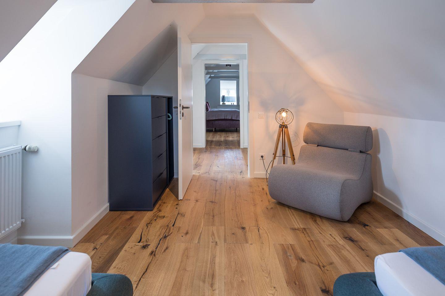 Das Ferienhaus verfügt über zwei Schlafzimmer, die beide über eine Treppe im Obergeschoss erreichbar sind. Die Betten (180 x 200 und 2x 90x 200) sind bei Ankunft liebevoll bezogen. Im größeren Schlafzimmer befindet sich ein TV.