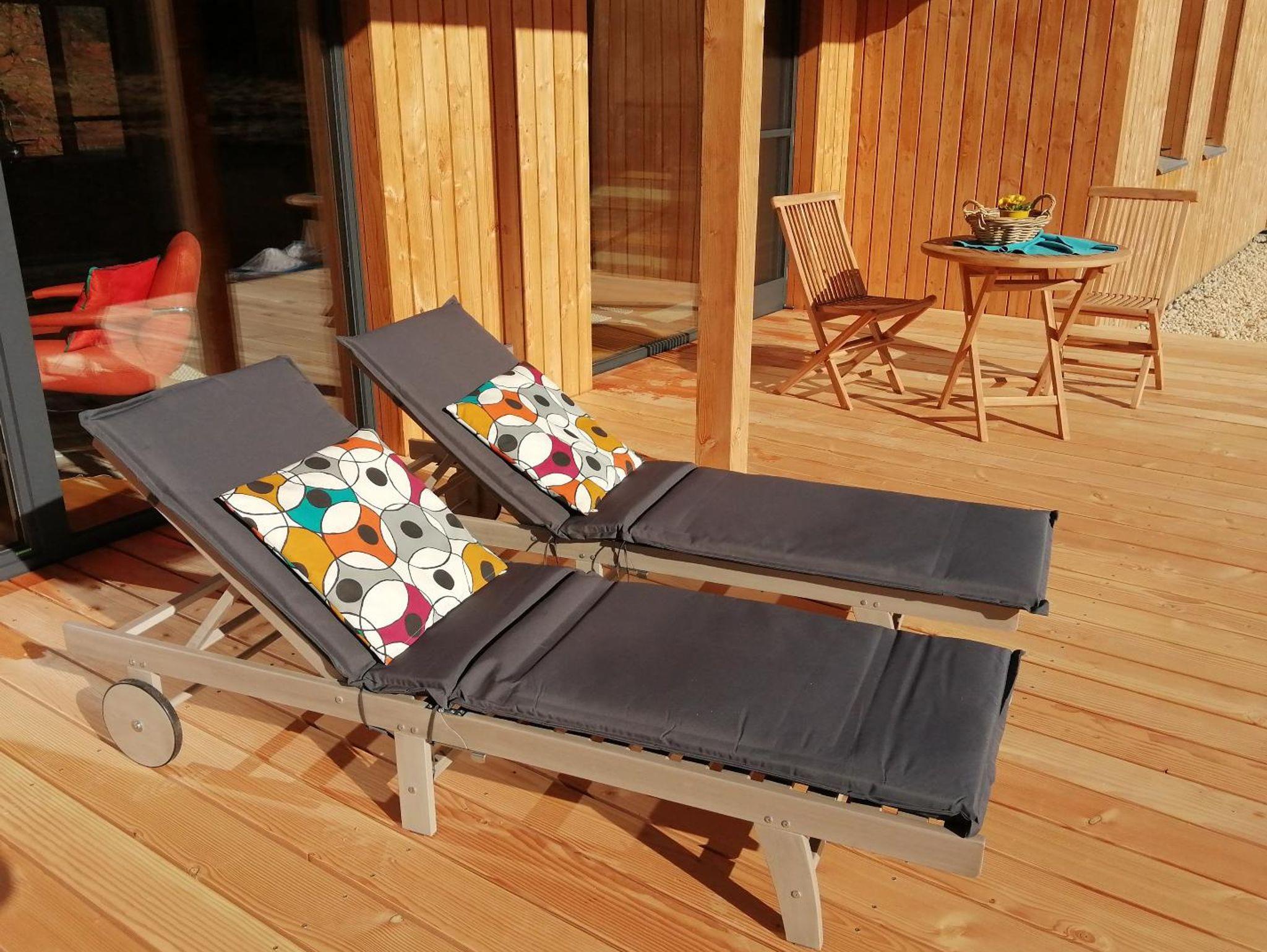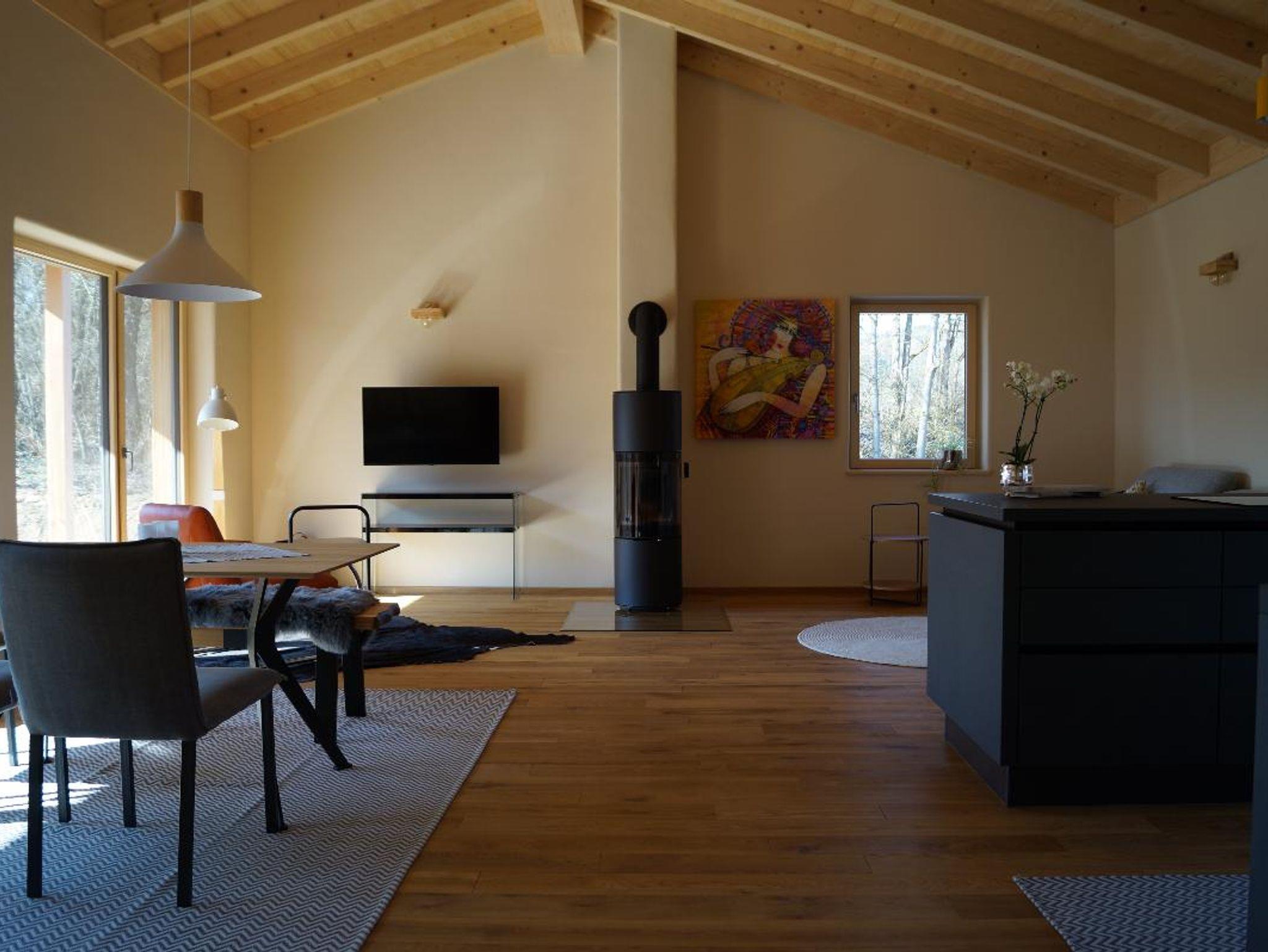 Unser Ferienhaus Waldheimat verfügt über eine Küche mit Geschirrspüler, Induktionskochfeld, Kühlschrank und einen Backofen. Im Wohnbereich befindet sich ein Essplatz für 6 Personen, eine bequeme Sofalandschaft, ein TV-Gerät und ein gemütlicher Lesestuhl. Ein Kaminofen trägt zum Wohlbefinden bei. Die große Holzterrasse ist mit Holzmöbeln ausgestattet. Im Garten befindet sich ein holzbefeuerter Hot Tub. Eine Waschmaschine, sowie 2 Fahrräder stehen kostenlos zur Verfügung. Den PKW- Stellplatz finden Sie direkt am Haus.
