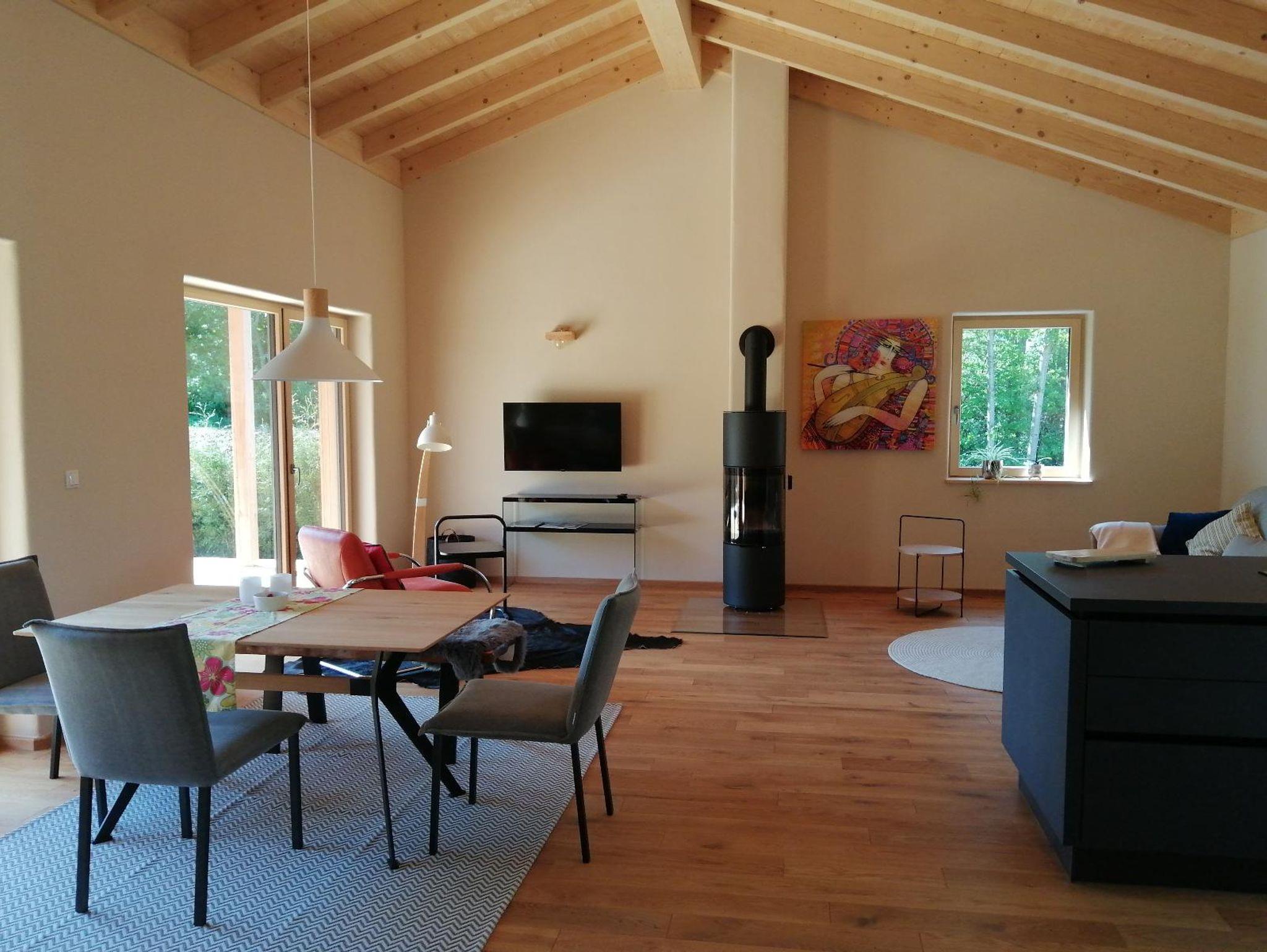 eingebettet zwischen Scheunen und Apfelbäumen, umringt von Blumenwiesen und einem weitläufigen Hofgelände, liegt das schöne Vollholz-Ferienhaus Waldheimat. Im 100 qm großen, neu gebauten und zum Wohlfühlen zurechtgemachten Haus im Herzen des Bayerischen Waldes haben Sie die Möglichkeit, sich vollständig vom Alltagsstress zu erholen und Ihre Zeit in vollen Zügen zu genießen. Ob nach einer schweißtreibenden Wanderung in den Bergen des Arberwaldes, oder nach einer rasanten E-Bike-Tour entlang des Donau-Regen-Radweges; Entspannung finden Sie am Feuer vor dem offenen Kaminofen, auf der großzügigen Liegelandschaft im Wohnzimmer, beim Kochen in der geräumigen und voll ausgestatteten Küche oder bei einem heißen Bad im Relax-Raum. Die Eindrücke des Tages können Sie auf der Terrasse bei einem Glas Wein oder im beheizten Hot Tub Revue passieren lassen. Die Gästekarte ermöglicht kostenlose Bus- und Bahnfahrten im ganzen Landkreis Cham ( Fahrradmitnahme inklu.).