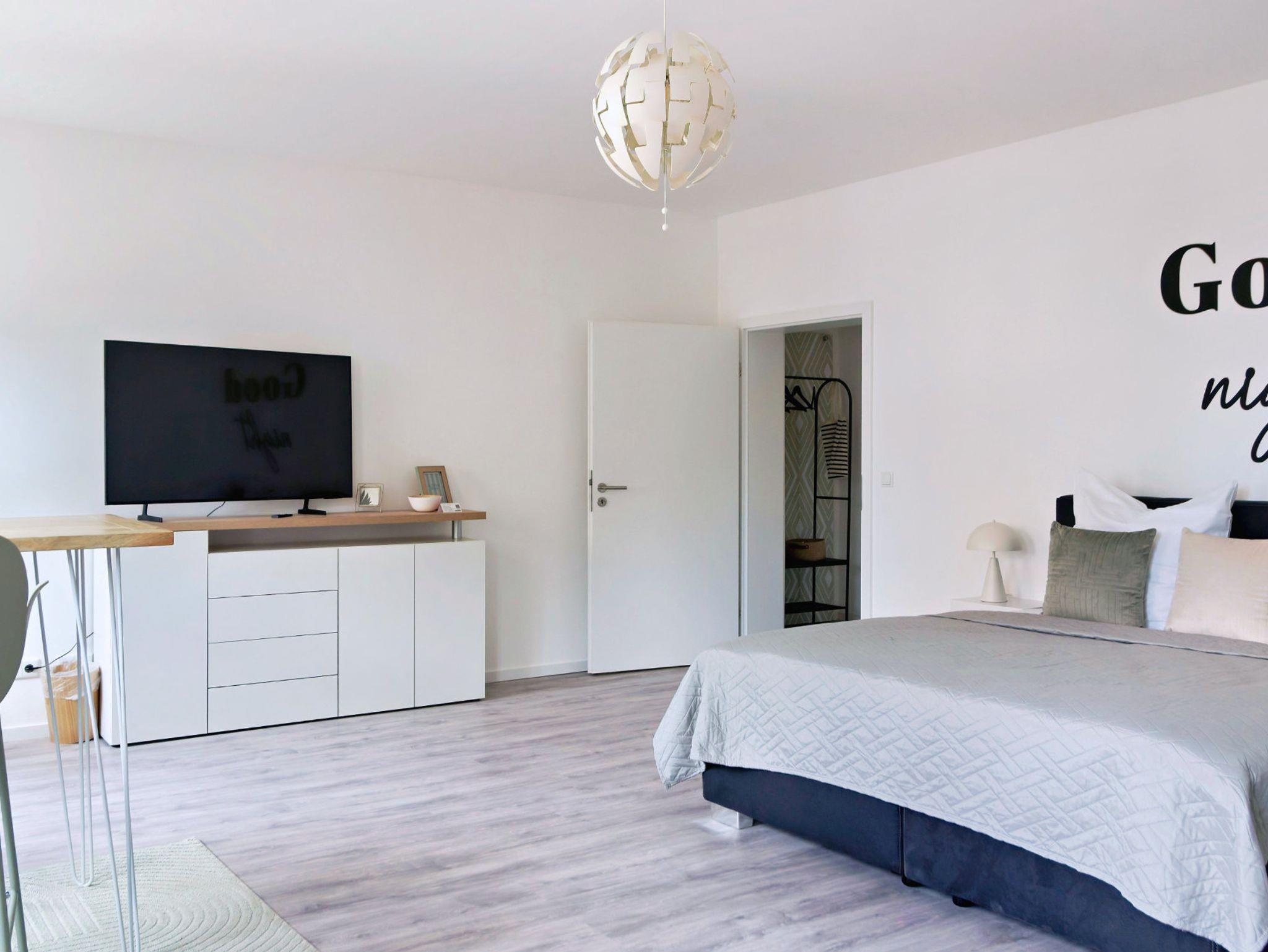 • Schlaf und Wohnbereich: Ein komfortables Boxspringbett (1,8 m x 2 m) lädt zum Entspannen ein.
