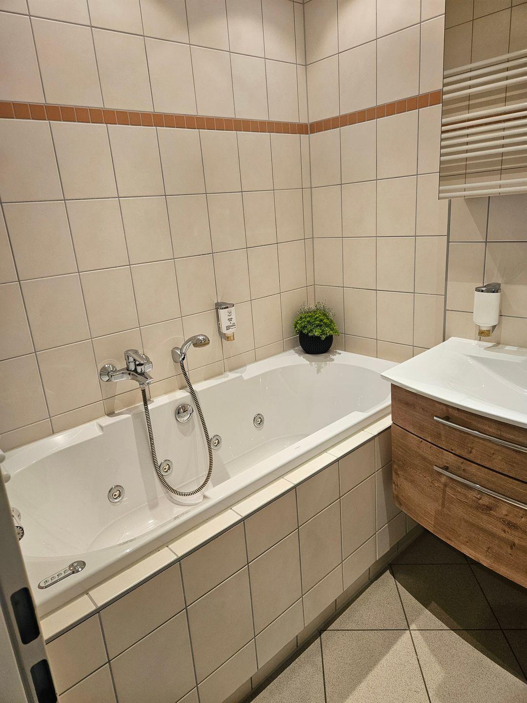 Das Apartment bietet Platz für bis zu 3 Personen und verfügt über ein großzügigen Wohn-/Schlafbereich mit Doppelbett, Pantryküche mit Essplatz, Badezimmer, Terrasse, PKW-Stellplatz. Für den perfekten Start in den Urlaub sind die Betten bei Anreise frisch bezogen und eine Erstausstattung Handtücher liegt bereit. Die Nutzung des Schwimm-und Fitnessbereichs sowie der Saunalandschaft sind im Mietpreis inklusive.