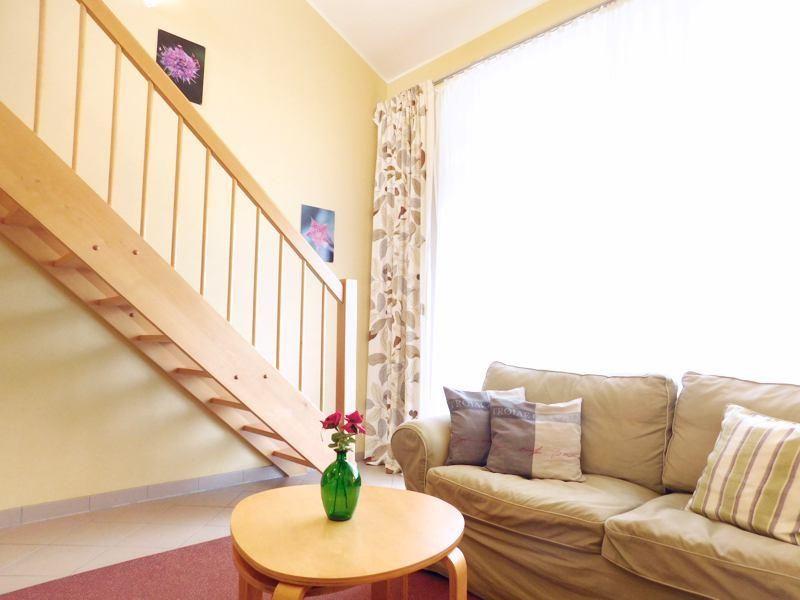 Das Apartment bietet Platz für bis zu 2 Personen auf 2 Etagen mit offener Schlafempore, Wohn-/Essbereich, Pantryküche, PKW-Stellplatz. Für den perfekten Start in den Urlaub sind die Betten bei Anreise frisch bezogen und eine Erstausstattung Handtücher liegt bereit. Die Nutzung des Schwimm-und Fitnessbereichs sowie der Saunalandschaft sind im Mietpreis inklusive.