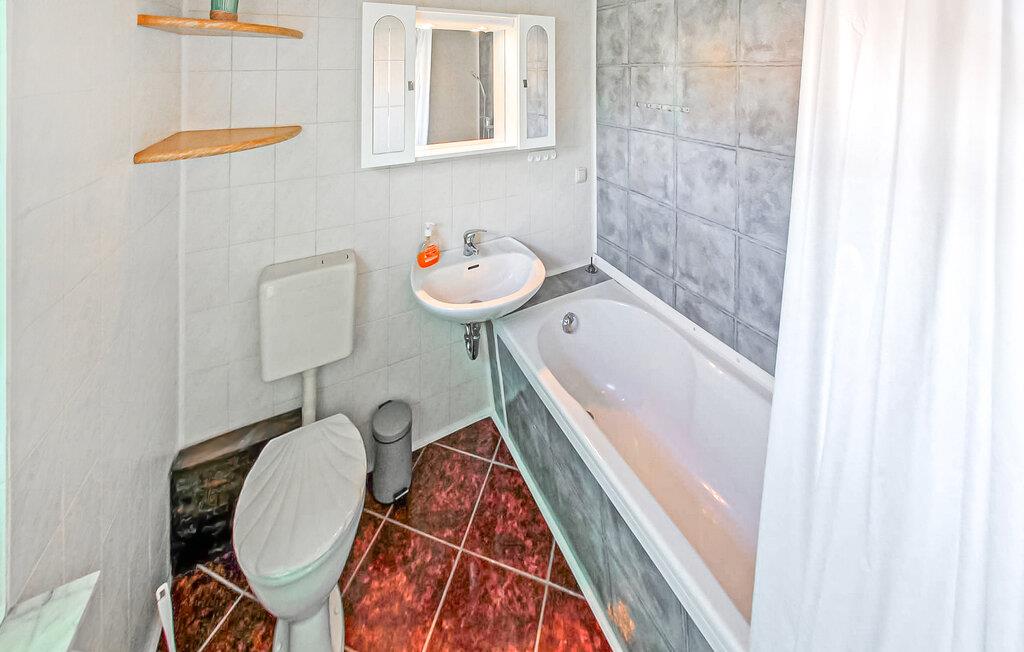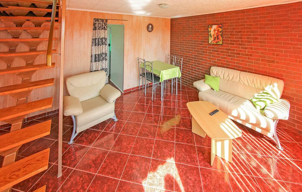 Den ene af to ferielejligheder moderniseret i 2016, som er beliggende hver for sig i et fritliggende sommerhus på ejerens 700 kvadratmeter store beboelsesejendom. Der er opholdsstue (polstrede møbler, fladskærms-tv, radio/cd), åbent tekøkken (el). komfur og en lille bagefacilitet, Køleskab, spisebord, diverse køkkenmaskiner), på øverste etage er der to soveværelser (hver med en dobbeltseng) og et badeværelse med brus. Hele ferieboligen er centralt opvarmet terrasse, en grill, en parkeringsplads og en cykelkælder. Stedet er pålagt turistskat, sengelinned og håndklæder er inkluderet og vil blive opkrævet lokalt.