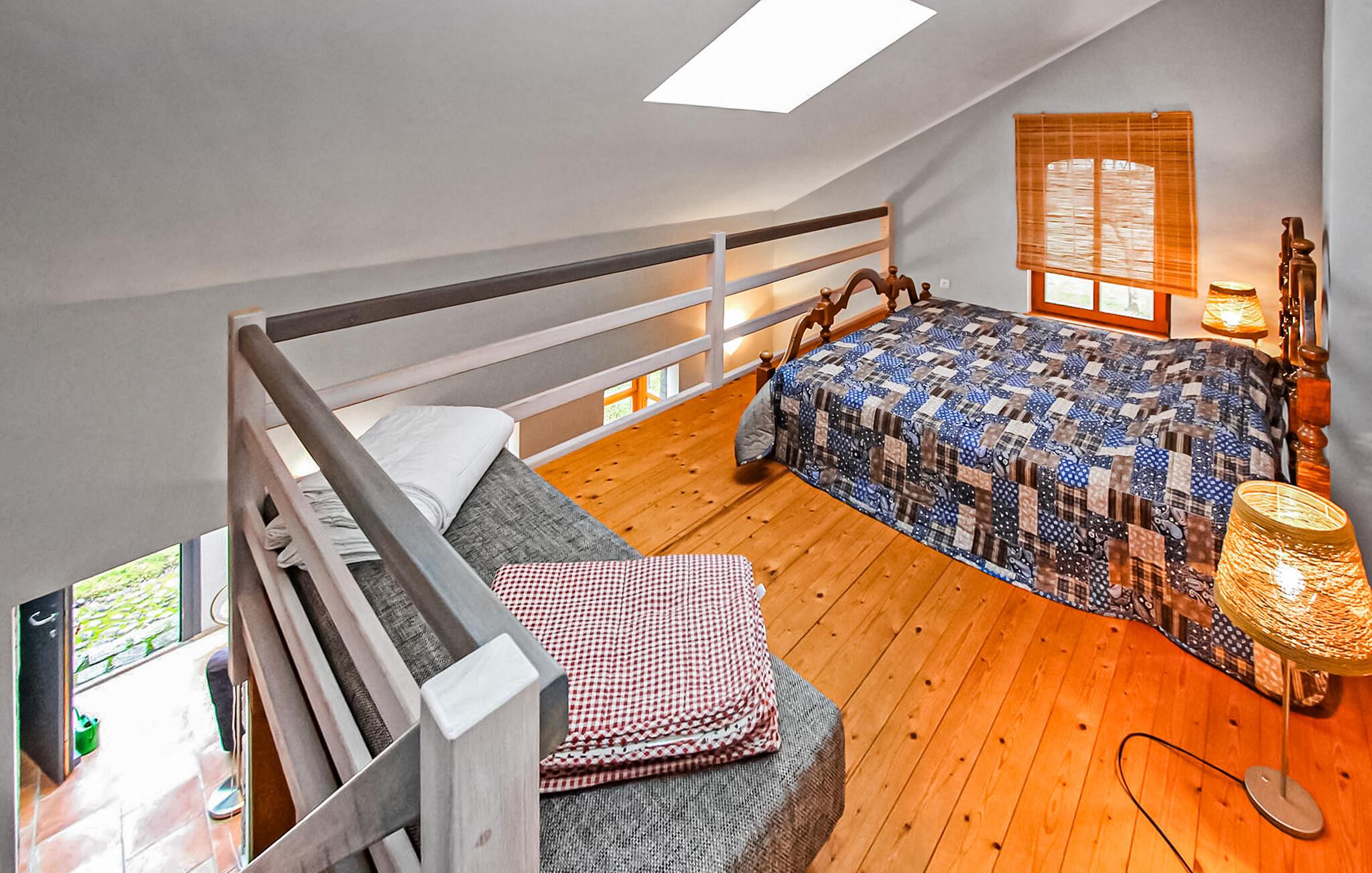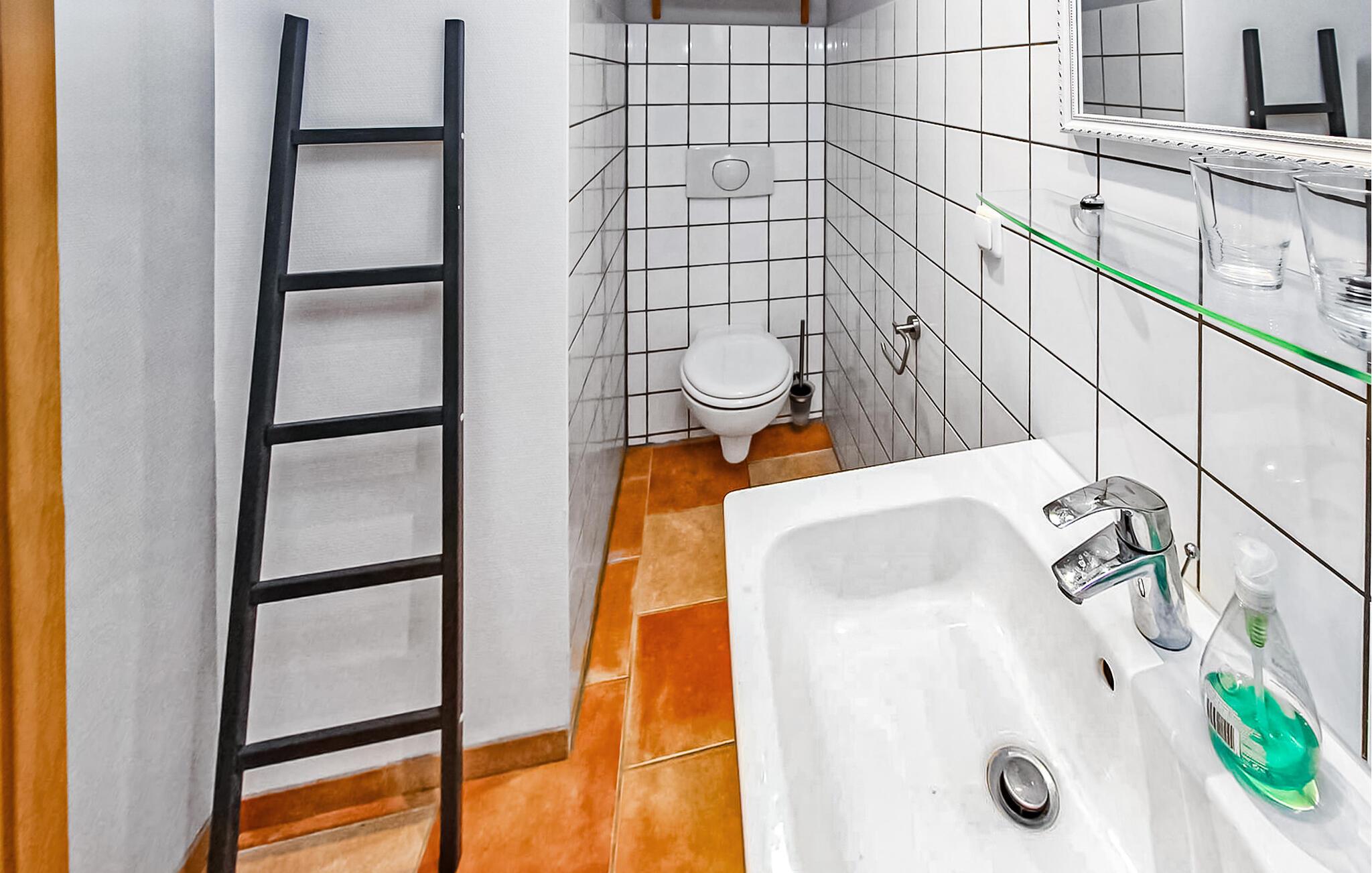 Direkte i centrum af Mirow, kun få minutters gang fra Lake Mirow og Slotsøen, er der to studier til 2 eller op til 3 personer i en separat anneksbygning, som blev udvidet i 2018, på ejernes cirka 900 kvadratmeter ejendom. Bagere, butikker og restauranter ligger inden for gåafstand. De to smagfuldt indrettede ikke-ryger lejligheder med vinterhave er centralt opvarmede, har separate indgange og strækker sig åbent over to etager. Parkeringspladser, cykelrum, opholdsområde i haven, liggestole og grill samt gratis trådløs internetadgang er til rådighed for alle gæster. Den samlede pris inkluderer vand- og energiforbrug, sengelinned og håndklæder samt slutrengøring. Betales på stedet: Turistskat (feriestedet Mirow er pålagt turistskat.) Den cirka 50 kvm store lejlighed til 2 voksne og 1 barn (10 år) strækker sig over to etager. I det nederste område er der stue (pejs med brænde, sofa, fladskærms-tv, radio/cd-afspiller), åbent tekøkken (kogeplader, køleskab med fryser), badeværelse med bruser/toilet og en møbleret vinterhave (spiseområde) . Det åbne soveområde (1 x dobbeltseng, 1 x polstret liggestol 0,70 bred) på øverste etage kan nås via en trappe. En barneseng og høj stol kan stilles til rådighed efter anmodning. Mirow er en lille by midt i Mecklenburgs sødistrikt mellem boligbyen Neustrelitz (ca. 25 km væk) og Waren/Müritz spa (ca. 45 km væk). Byen ligger direkte ved Müritz-Havel-vandvejen og er en attraktion for alle vandsportsentusiaster og vandrere. På grund af sin forbindelse til andre vandområder er Lake Mirow et ideelt udgangspunkt for varierede padleture.Byens største attraktion er Castle Island med Mirow Castle, som først genåbnede i juni 2014 efter mange års restaurering, de 3 Queens Palads, den idylliske Love Island, Johanneskirken og Old Castle Bryggeri med eventgastronomi.Der er flere restauranter og caféer i byen, et fiskerøgeri, indkøbsmuligheder samt båd- og cykeludlejning. Mirow kan nemt nås med tog via jernbaneforbindelsen til Neustrelitz.