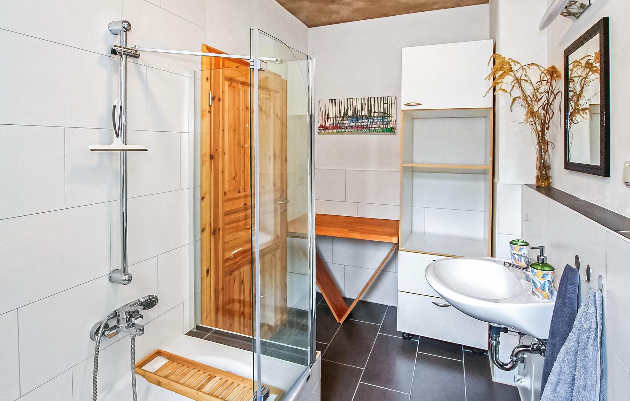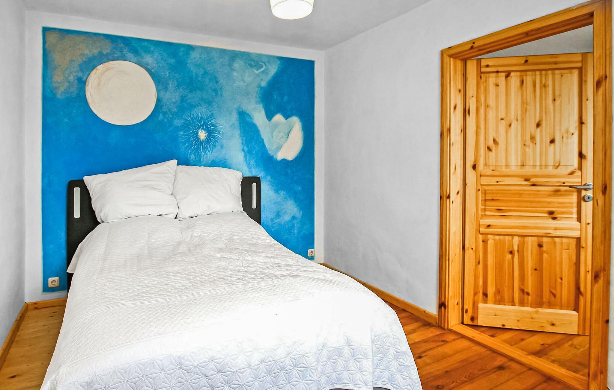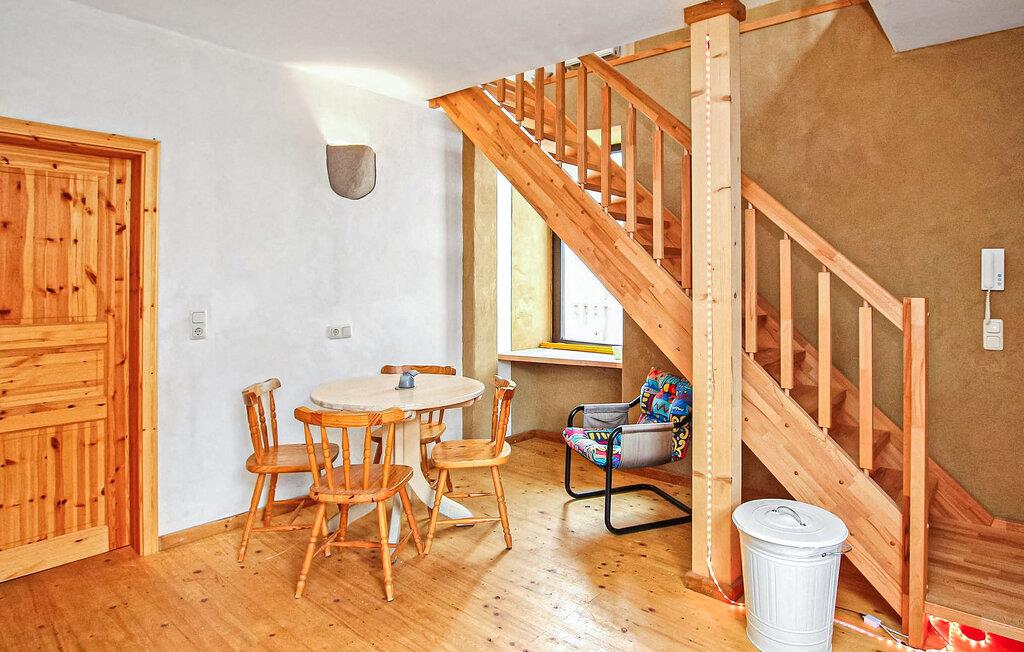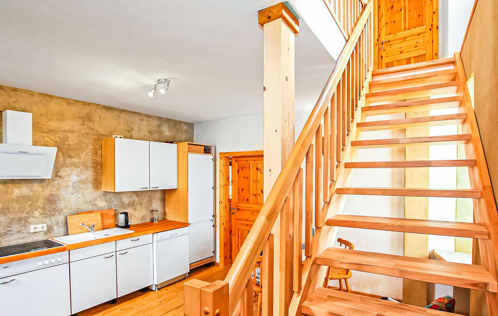 Kun få skridt fra Mirow Castle og Love Island ligger ferielejligheden for op til 3 voksne og 1 barn, som blev omfattende renoveret ud fra et økologisk synspunkt i 2021 (inklusive påføring af lerpuds, renovering af trægulvbrædderne ), og er beliggende på den cirka 1.600 kvadratmeter store, helt lukkede boligejendom i et udhus. Supermarkeder, bagerier og restauranter ligger inden for gåafstand, og lido ved Mirow-søen og togstationen er kun omkring 10 minutters gang (900 m) væk. Den ikke-ryger lejlighed er ca 100 kvadratmeter stor, centralvarme (gulvvarme) og allergivenlig (fremragende indeklima). Tilgængelig via fælles gang og strækker sig over 2 etager. I stueetagen er der spisestue, køkken (spiseplads, komfur, miniovn, køleskab med fryser, opvaskemaskine, elkedel, kaffemaskine, brødrister, høj stol), badeværelse (brusekar, toilet, hårtørrer) og en lille gang. På øverste etage (trappe til køkkenet) er der den åbne stue (sovesofa, fladskærms-tv, radio), et soveværelse med en 1,40 bred dobbeltseng (gennemgangsværelse!) og endnu et soveværelse med en dobbeltseng. Der er også en parkeringsplads, cykelopbevaring, en grill, et opholdsområde i haven og gratis trådløs internetadgang. Slutrengøring samt vand- og elforbrug er inkluderet i den samlede pris. Sengelinned og håndklæder kan lejes mod betaling, eller du kan medbringe dit eget. Kæledyr er ikke tilladt i denne ejendom. Betales på stedet: turistskat. Mirow er en lille by midt i Mecklenburgs sødistrikt mellem boligbyen Neustrelitz (ca. 25 km væk) og Waren/Müritz spa (ca. 45 km væk). Byen ligger direkte ved Müritz-Havel-vandvejen og er en attraktion for alle vandsportsentusiaster og vandrere. På grund af sin forbindelse til andre vandområder er Lake Mirow et ideelt udgangspunkt for varierede padleture.Byens største attraktion er Castle Island med Mirow Castle, som først genåbnede i juni 2014 efter mange års restaurering, de 3 Queens Palads, den idylliske Love Island, Johanneskirken og Old Castle Bryggeri med eventgastronomi.Der er flere restauranter og caféer i byen, et fiskerøgeri, indkøbsmuligheder samt båd- og cykeludlejning. Mirow har også en togstation og er let tilgængelig med tog via forbindelsen til Neustrelitz.
