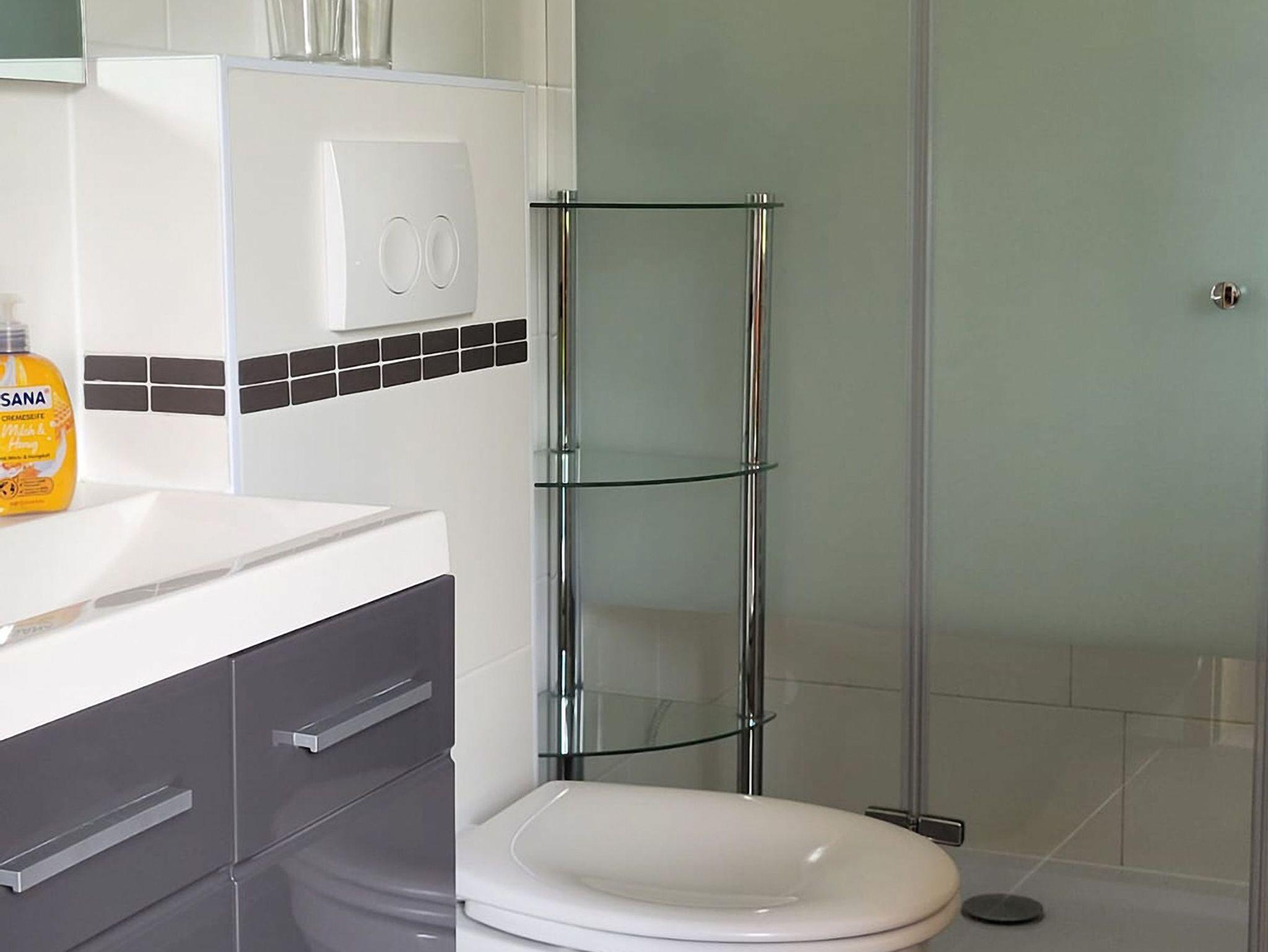 Dusche mit WC. Von der überdachten Terrasse hat man einen schönen Blick aufs Wasser. Es stehen Ihnen Gartenmöbel und ein Grill zur Verfügung. Sie können entspannen, die Seele baumeln lassen und den vorbeischippernden Schiffen zusehen. Eine Liegewiese und ein Strandkorb laden zum Sonnenbaden ein.