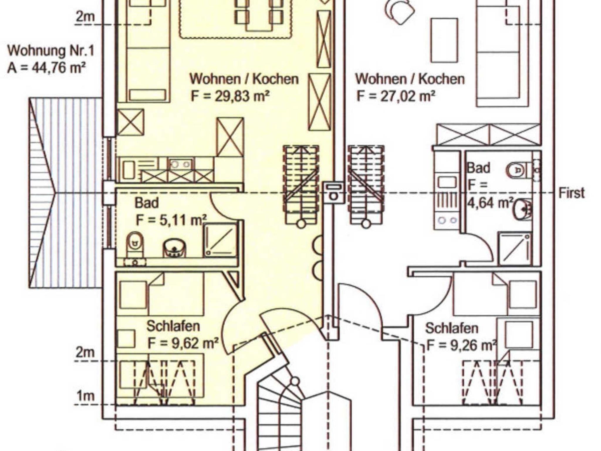 Komfortable Dachgeschosswohnung mit ca 45 qm Wohnfläche , die 2017 komplett neu eingerichtet wurde.