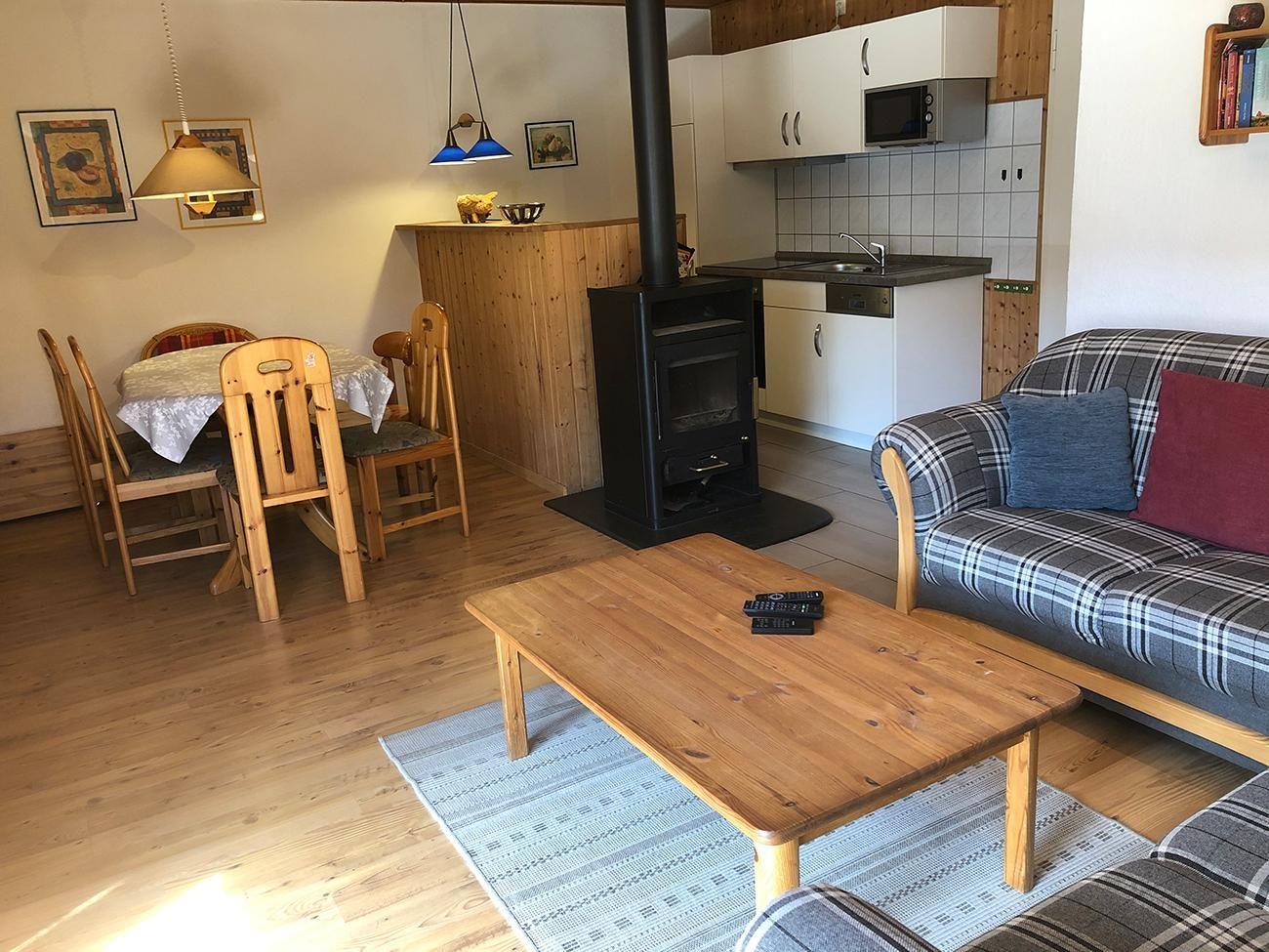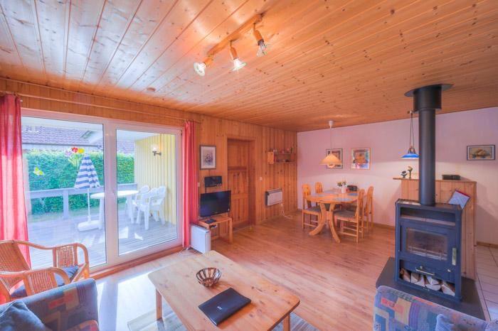Die Doppelhaushälfte bietet Platz für bis zu 4 Personen auf einer Etage mit 2 Schlafzimmern, offenem Wohn- und Essbereich, Küchenzeile, Terrasse und Abstellraum.