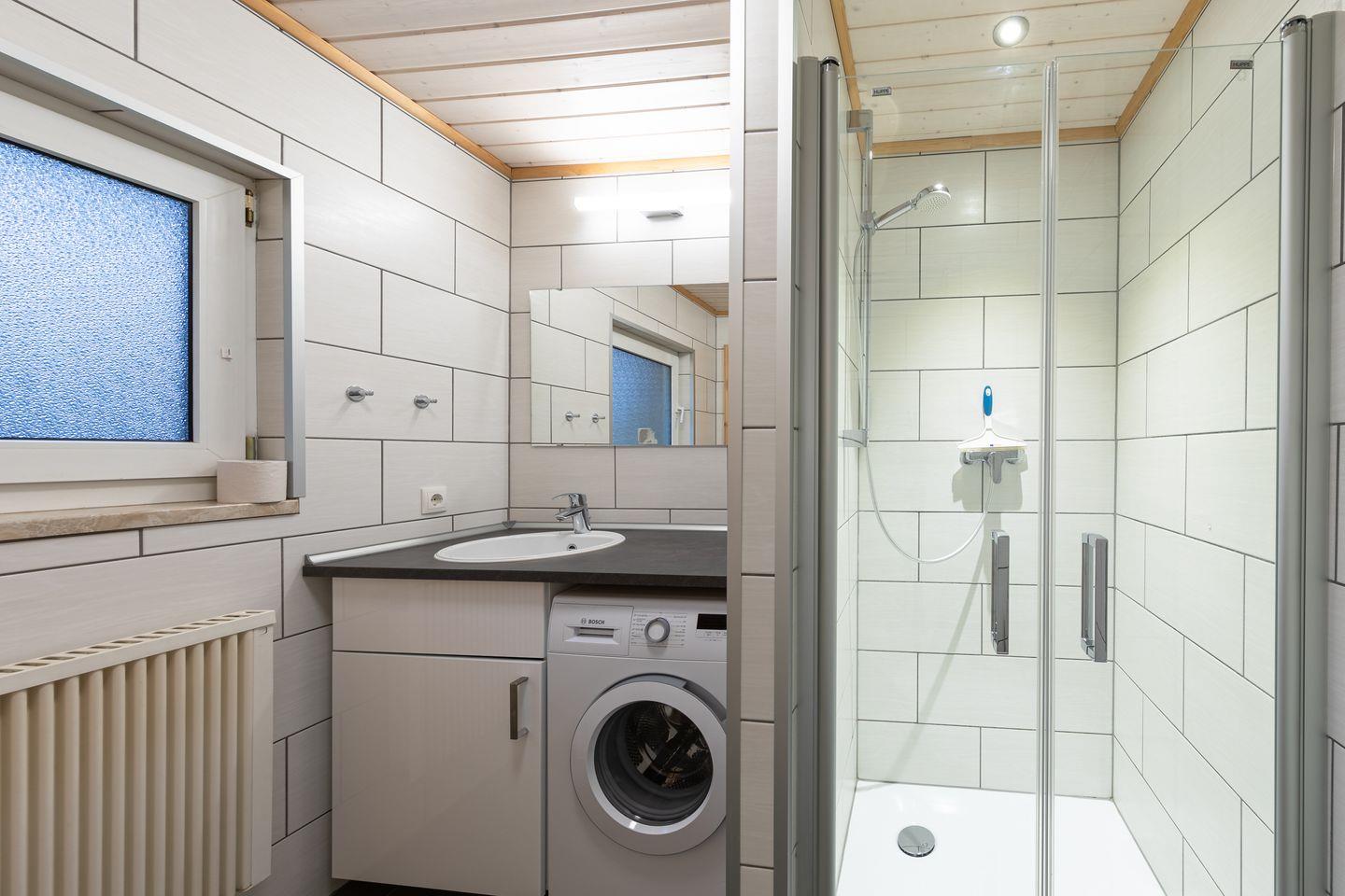 Die Doppelhaushälfte bietet Platz für bis zu 4 Personen auf einer Etage mit 2 Schlafzimmern, offenem Wohn- und Essbereich, Küchenzeile, Terrasse und Abstellraum.