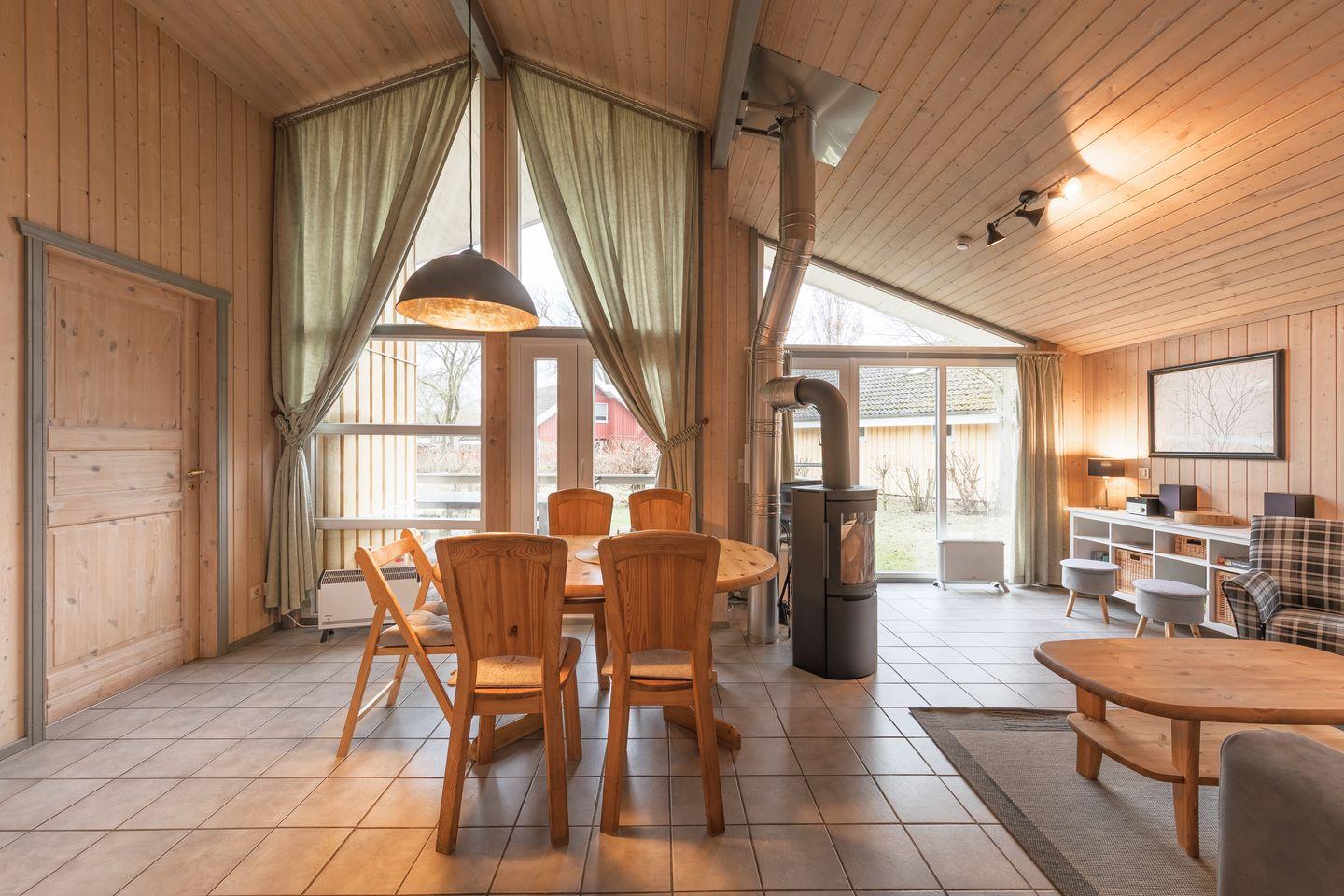 Das Ferienhaus im skandinavischen Stil bietet Platz für bis zu 4 Personen auf einer Etage mit 2 Schlafzimmern, Wohn-/Essbereich, Einbauküche, Sauna und Whirlpool und Pkw-Stellplatz. Energiekosten werden nach Verbrauch abgerechnet.