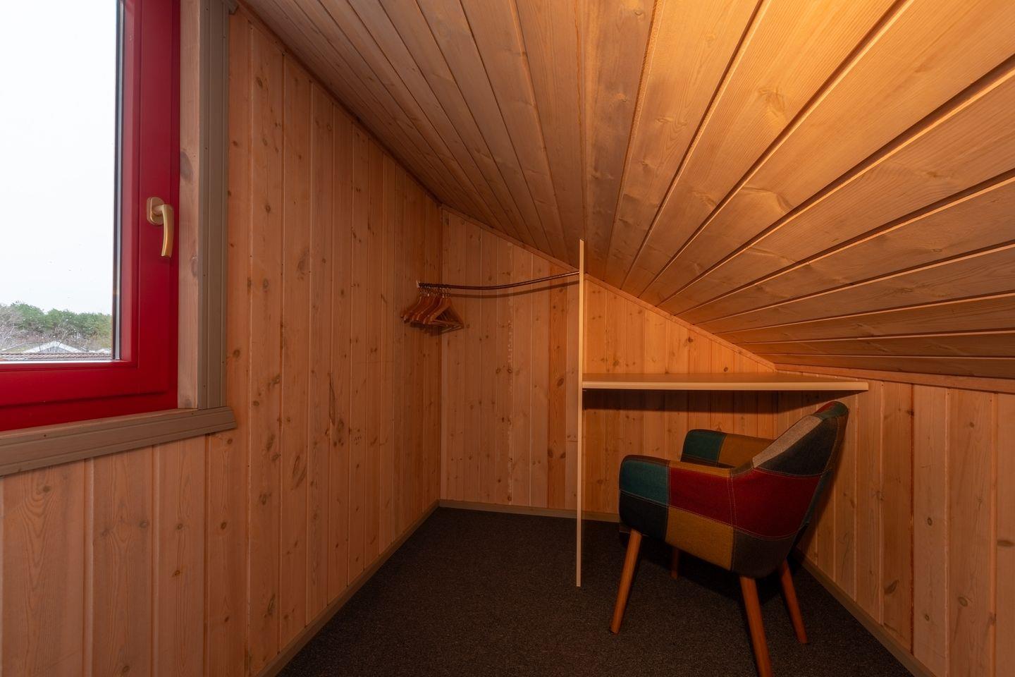 Das Ferienhaus im skandinavischen Stil bietet Platz für bis zu 6 Personen auf 2 Etagen mit 2 Schlafzimmern und offener Schlafgalerie, Wohn-/Essbereich, Einbauküche, Badezimmer mit Sauna, Terrasse, Abstellraum und Pkw-Stellplatz. Die Energiekosten werden nach Verbrauch abgerechnet.