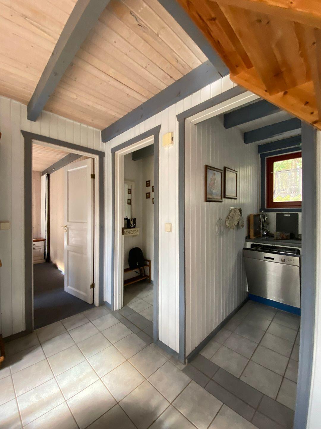 Das Ferienhaus im skandinavischen Stil bietet Platz für bis zu 6 Personen auf 2 Etagen mit 2 Schlafzimmern und offener Schlafgalerie, Wohn-/Essbereich, Einbauküche, Badezimmer mit Sauna, Terrasse, Abstellraum und Pkw-Stellplatz. Die Energiekosten werden nach Verbrauch abgerechnet.