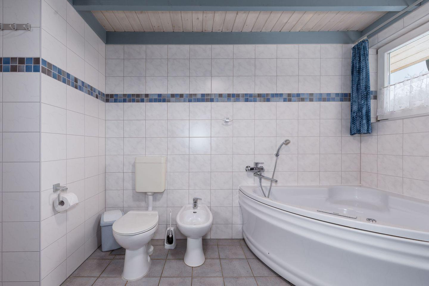 Für entspannte Stunden sorgt ein moderner, internetfähiger Fernseher, der Ihnen Zugriff auf Streamingdienste und Mediatheken ermöglicht. Nach einem aktiven Urlaubstag können Sie sich im komfortable ausgestatteten Badezimmer mit Sauna und Whirlpool verwöhnen lassen – eine perfekte Kombination aus Wellness, Komfort und Erholung direkt in Ihrem Ferienhaus.