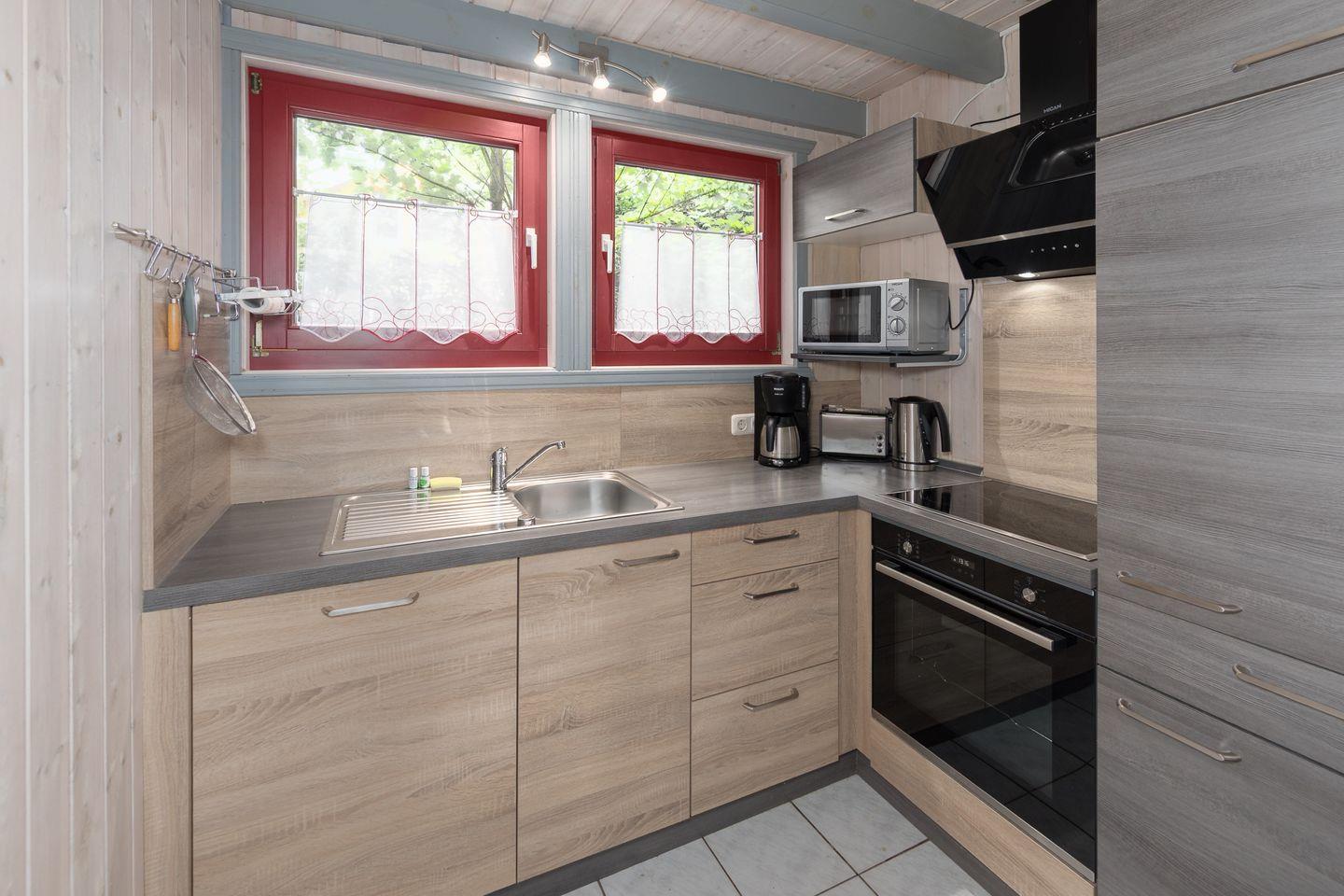 Das Ferienhaus im skandinavischen Stil bietet Platz für bis zu 6 Personen auf 2 Etagen mit 2 Schlafzimmern und offener Schlafgalerie, Wohn-/Essbereich, Einbauküche, Badezimmer mit Sauna, Terrasse, Abstellraum und Pkw-Stellplatz. Die Energiekosten werden nach Verbrauch abgerechnet.