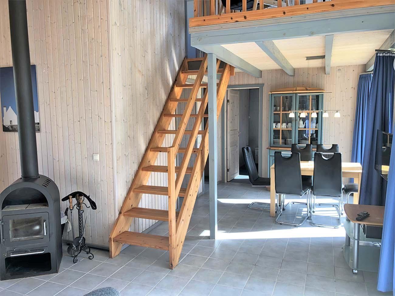 Das Ferienhaus im skandinavischen Stil bietet Platz für bis zu 6 Personen auf 2 Etagen mit 3 Schlafzimmern, Wohn-/Essbereich, Einbauküche, Sauna, Terrasse, Abstellraum und Pkw-Stellplatz. Energiekosten werden nach Verbrauch abgerechnet.