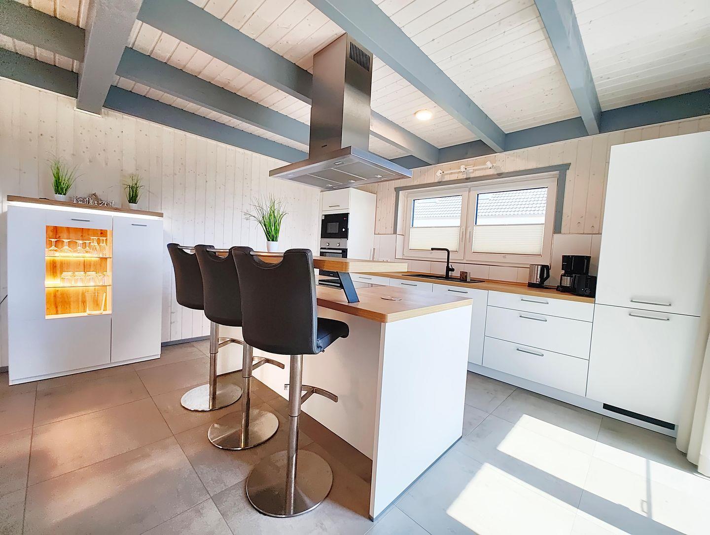 Das Ferienhaus im skandinavischem Stil bietet Platz für bis zu 8 Personen auf zwei Etagen mit 4 Schlafzimmern, 2 Badezimmern, Wohn-/Essbereich mit offener Küche, Sauna und Whirlpool, Terrasse und 2 PKW-Stellplätze gehören zur umfangreichen Ausstattung.