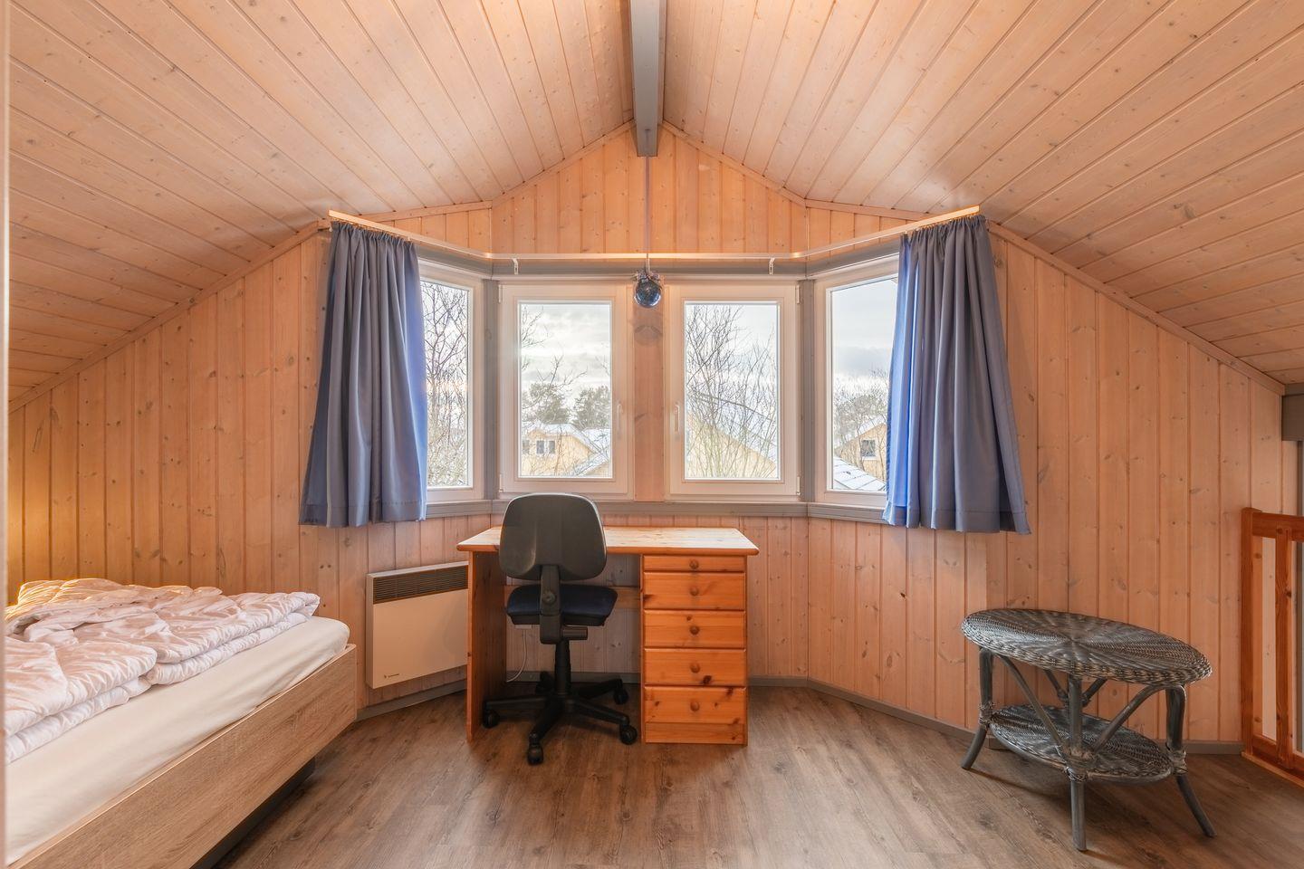 Das Ferienhaus im skandinavischen Stil bietet Platz für bis zu 6 Personen auf 2 Etagen mit 2 Schlafzimmern und offener Schlafgalerie, Wohn-/Essbereich, Einbauküche, Badezimmer mit Sauna, Terrasse, Abstellraum und Pkw-Stellplatz. Die Energiekosten werden nach Verbrauch abgerechnet.
