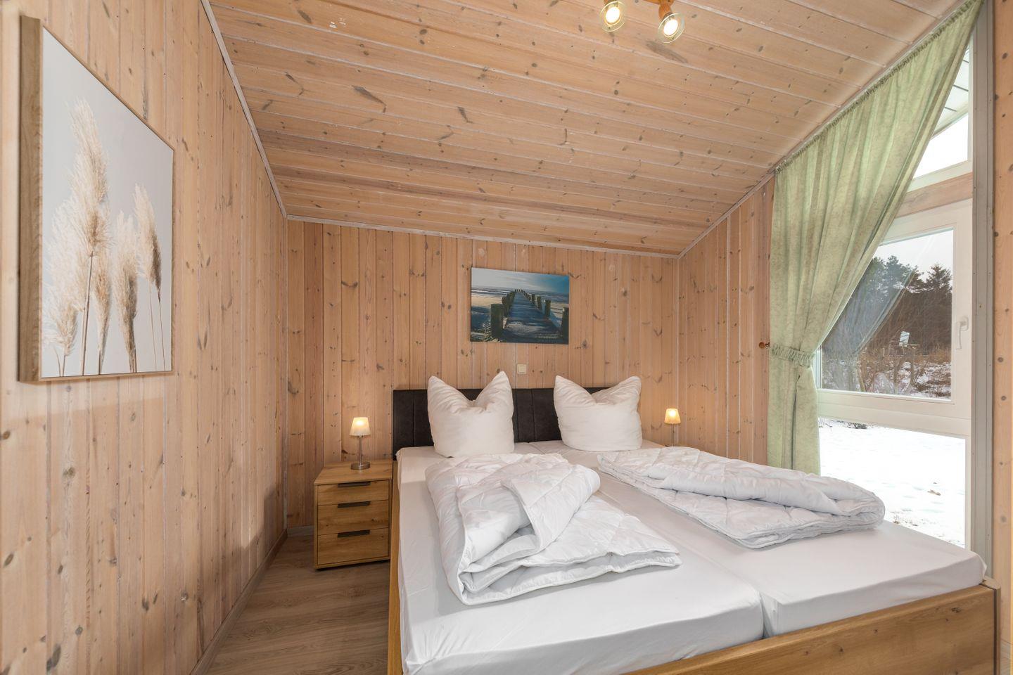 Das Ferienhaus im skandinavischen Stil bietet Platz für bis zu 4 Personen auf einer Etage mit 2 Schlafzimmern, Wohn-/Essbereich, Einbauküche, Sauna und Whirlpool und Pkw-Stellplatz. Energiekosten werden nach Verbrauch abgerechnet.
