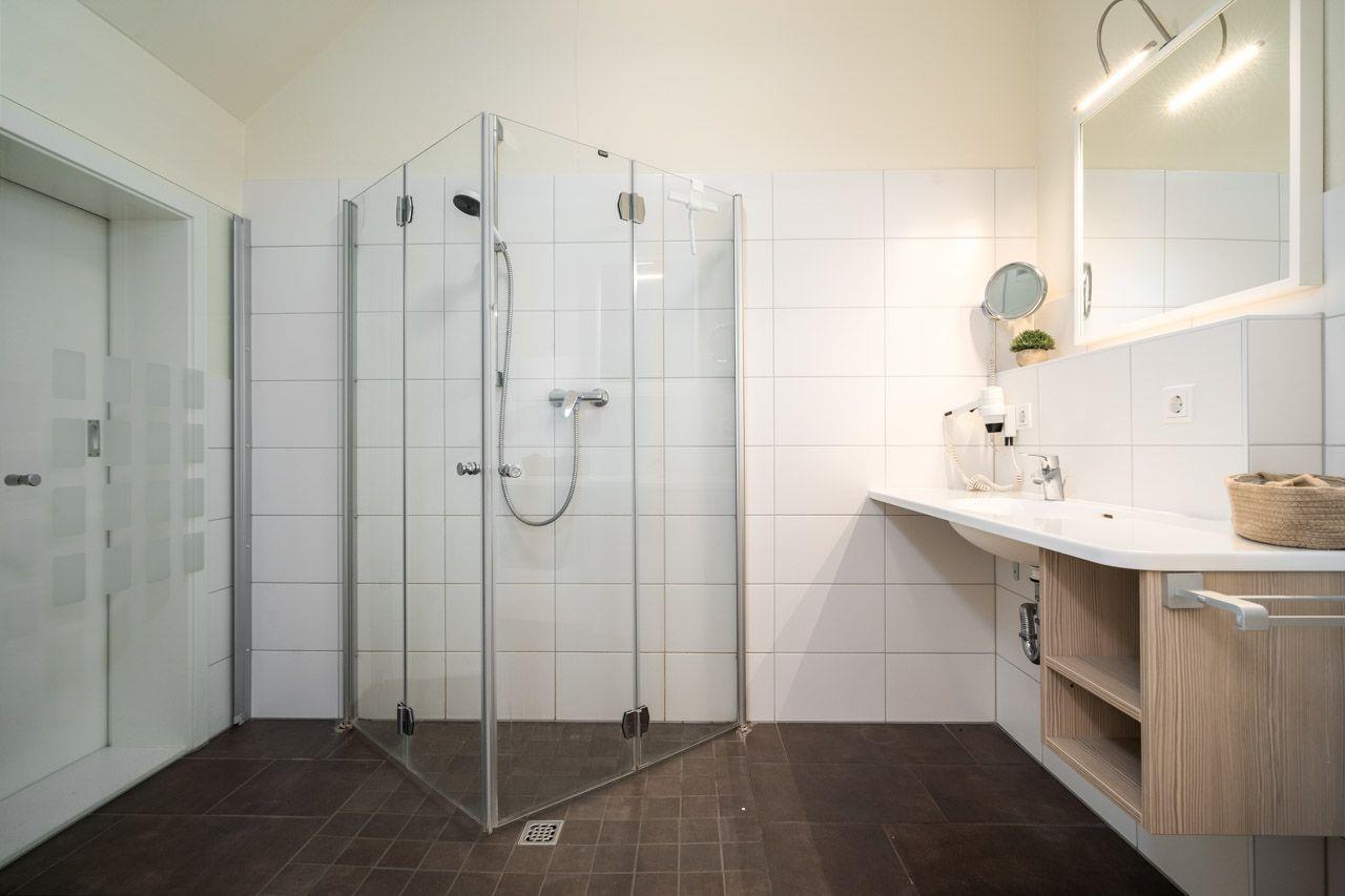 Die Badezimmerausstattung umfasst eine bodengleiche Dusche, Waschbecken, WC sowie einen Haartrockner und Kosmetikspiegel. Frische Handtücher und Bademäntel stehen bereit, sodass Sie gleich nach Ihrer Ankunft die Annehmlichkeiten nutzen können. In der gesamten Unterkunft sorgt die Zentralheizung für eine behagliche Atmosphäre, besonders in den kühleren Monaten.