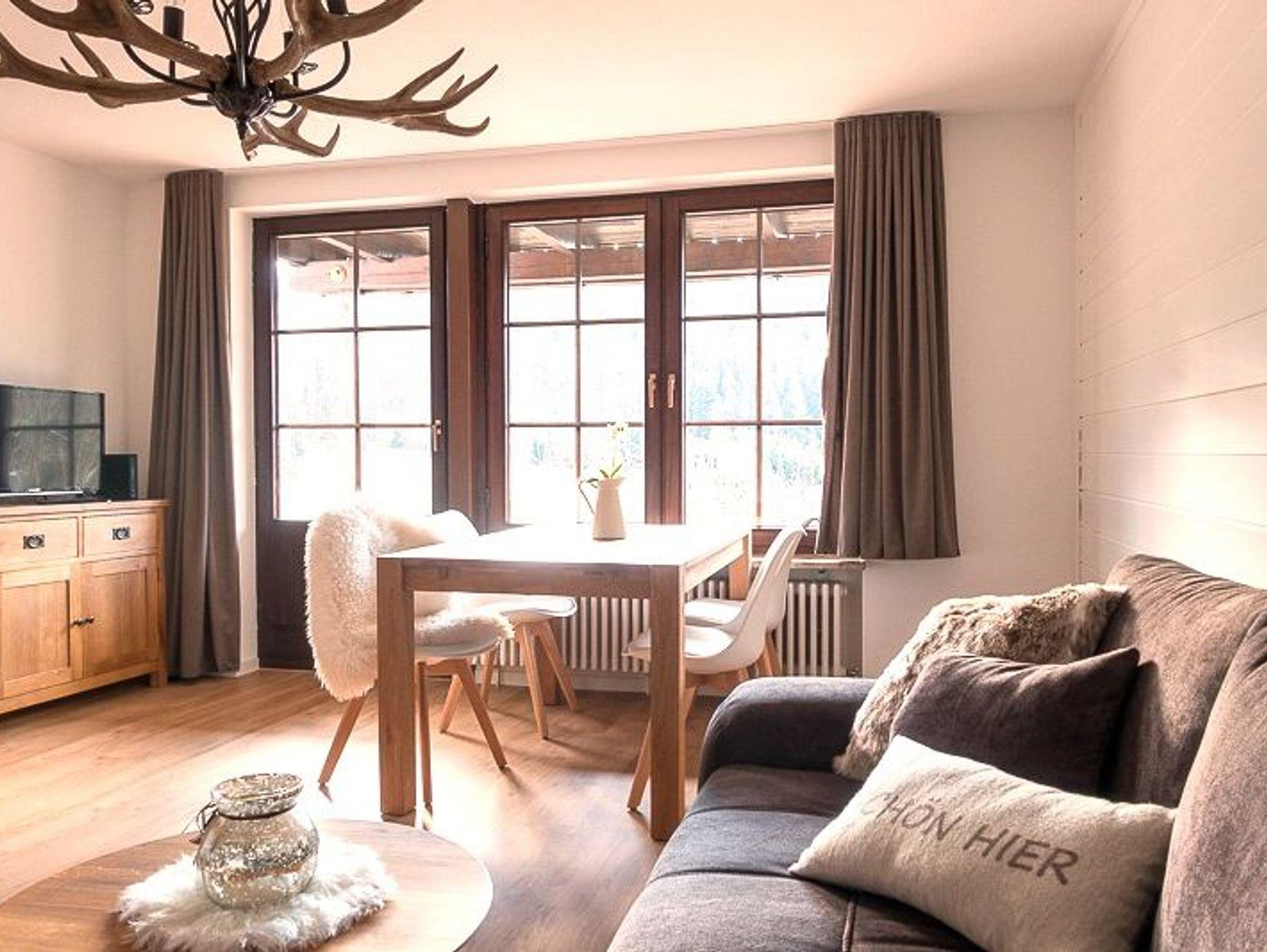 Die Ferienwohnung Enzian im Gartengeschoss ist besonders für Familien mit Kindern geeignet, da ein direkter Zugang zum Garten vorhanden ist.