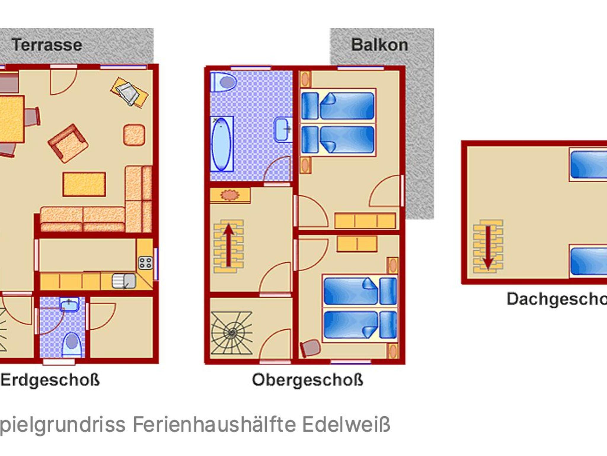 Für eine oder mehrere Familien empfehlen wir unsere Doppelhaushälfte Edelweiß. Auf drei Etagen finden Sie alles, was zu einem erholsamen Urlaub gehört. Der direkte Zugang zur Südterrasse ist ebenso praktisch wie sicher für Ihre Kleinen.