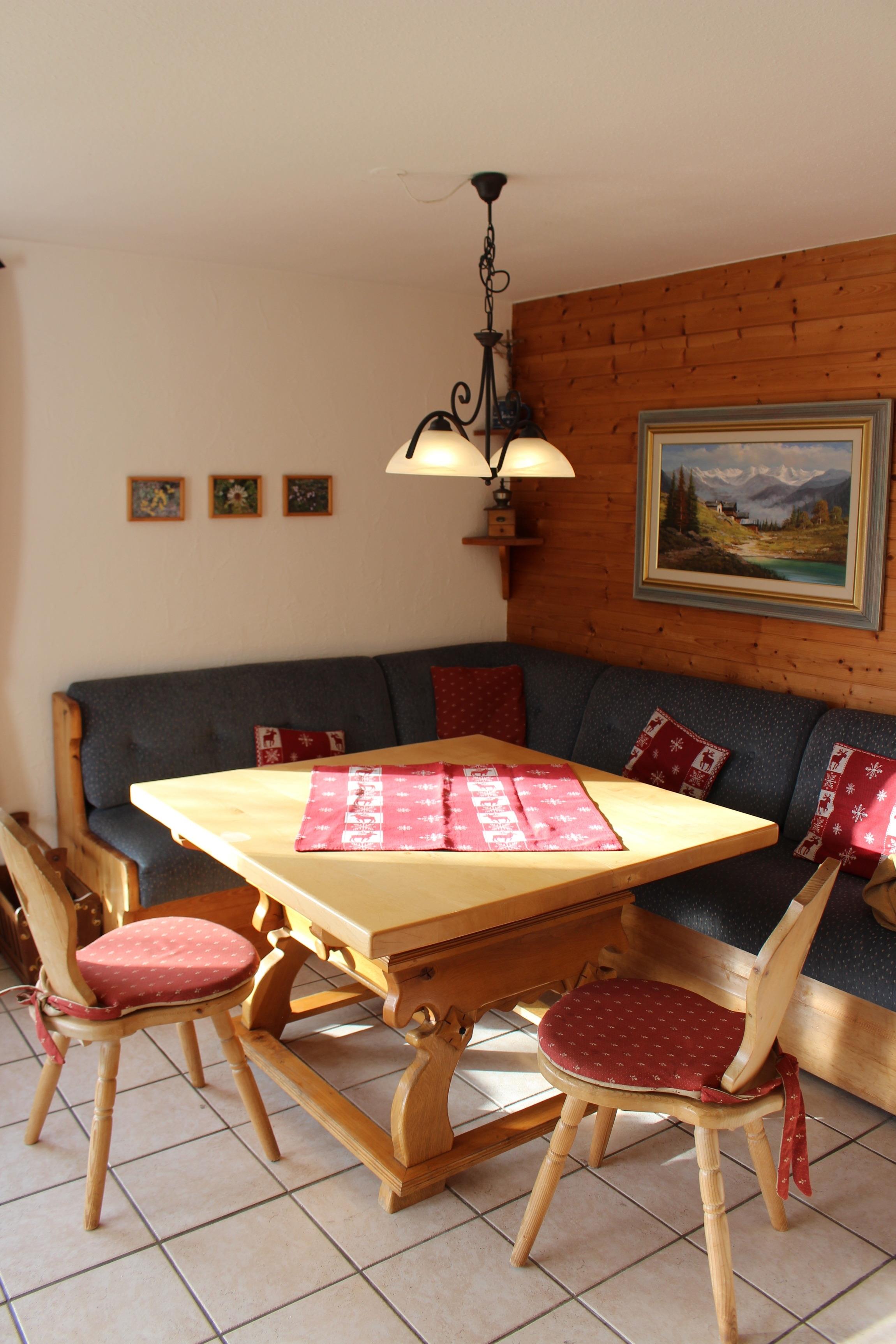 Eine große und gemütliche Eckbank mit großem Tisch sowie weiteren Stühlen lädt zum Essen und Verweilen ein. Von dort aus und auch von einem kleinen Sofa mit Fußbank kannst du durch die großen Fenster in die Umgebung sehen oder auch Fernseh schauen. Das Haus verfügt über einen W-Lananschluss.