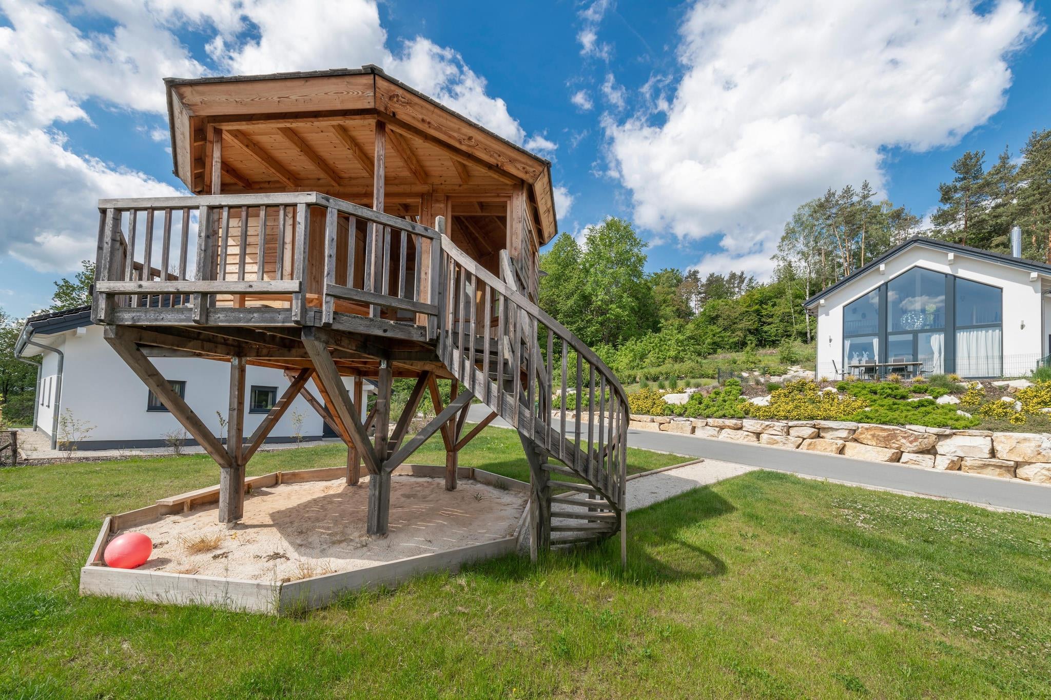 Nybygget, energieffektiv ferieby direkte ved det prisbelønnede Obernsee termalbad midt i uberørt natur. En stilfuld indretning, gulvvarme og lyse rum skaber straks en feel-good atmosfære. Du kan slappe af i solen på din terrasse. Du nyder godt af kombinationen af individuel tilværelse og natur- og fritidsoplevelsen - velforbundne cykel- og vandrestier fører direkte forbi resortet. På få skridt når du de termiske bade i Obernsee med deres smukke indendørs og udendørs pools, spændende rutsjebaner, en fantastisk sauna og wellness verden og selvfølgelig er der også et gastronomisk tilbud. Hvis du ikke slapper af her, hvor? Og det bedste: hver dag er en 2-timers billet til badeområdet inkluderet til dig, også på ankomst- og afrejsedagen. Med Franconian Switzerland Adventure Card får du også mange rabatter og gratis adgang til regionen. Vi ønsker dig et afslappende ophold! Feriebyen ligger smukt ved indgangen til det frankiske Schweiz mellem de historiske byer Bayreuth og Bamberg. Karakteristisk for regionen er engens klippebastioner og de skovklædte foden af Neubürg-massivet. Detaljer: WLAN-gæstekort med attraktive inkluderende tjenester 2-timers kort pr. dag til badeverdenen / termiske bade (sauna mod betaling) Aktiviteter i nærheden: Hvis du ikke kan finde noget her, er det kedsomhed! Talrige kulturelle tilbud såsom Wagner-festivalen i Bayreuth eller unikke museer venter på dig. Gåture i den varierede natur er uden tvivl højdepunktet - uanset om det er eventyrlige vandreture, grotteture eller afslappende gåture. Romantiske dallandskaber, slotte, ruiner og maleriske landsbyer skal opdages. Den 17 km lange legebane er en oplevelse for børn. Cyklister får også noget for pengene her, der er omkring 58 cirkulære og 14 langdistance cykelture til rådighed