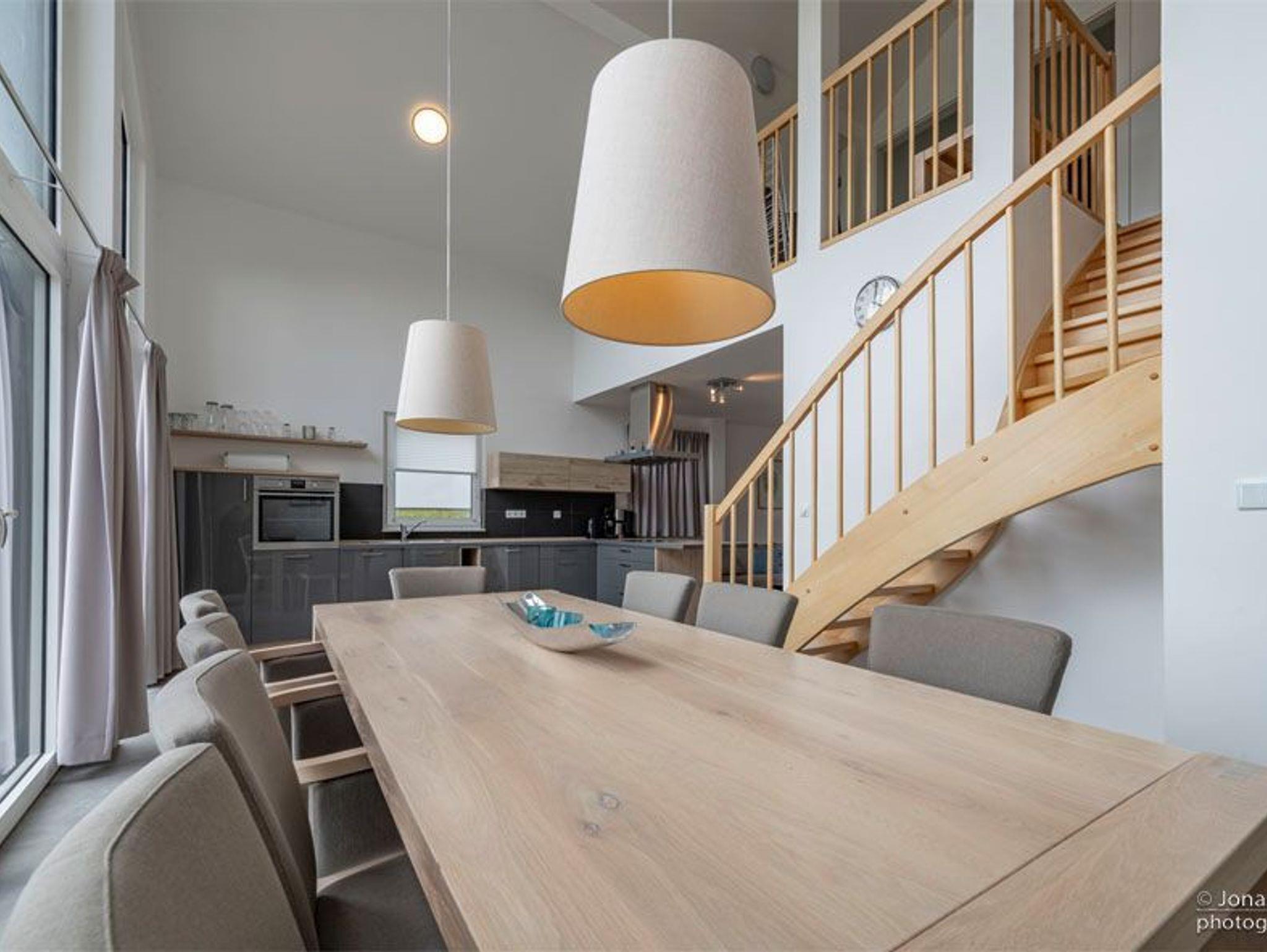 Großzügiges Esszimmer mit Flat-TV, großer Esstsich mit gemütlichen Stühlen, gemütlicher Wohnbereich mit ausziehbarer Sitz- & Schlafcouch und einer zusätzlichen Sitzcouch und vollständig ausgestattete Küche: Herd mit Ceranfeld und Backofen, Kühlschrank mit Gefrierfach, Kaffeemaschine (Senseo Pad), Wasserkocher, Toaster, Geschirrspülmaschine und mit Standard-Küchen- und Geschirrinventar komplett ausgestattet.