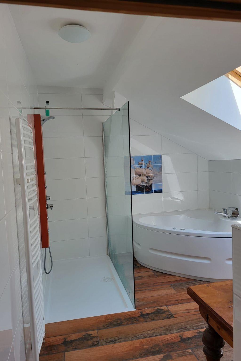 Inside, you will find well thought-out furnishings to ensure your comfort. In addition to six cosy bedrooms and three well-equipped bathrooms with shower and bathtub, there is also a modern kitchen. This includes a ceramic hob, both a filter and a capsule coffee machine, a kettle and a dishwasher. The partial underfloor heating provides additional cosiness and a washing machine is available for exclusive use. The centrepiece of the living area is undoubtedly the inviting fireplace, which provides cosy warmth and comfort.