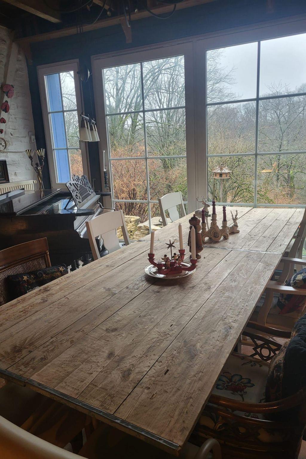 Welcome to our inviting holiday home in Mittelhof-Steckenstein, a perfect oasis for large groups or family celebrations of up to 20 people. Situated in the picturesque countryside of Rhineland-Palatinate, directly on the River Sieg, our accommodation provides the ideal backdrop for unforgettable moments. With a spacious living area, a historic-looking interior including an antique grand piano and upright piano, we invite you to immerse yourself in a world of relaxation and togetherness.