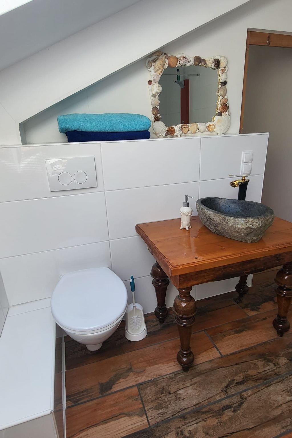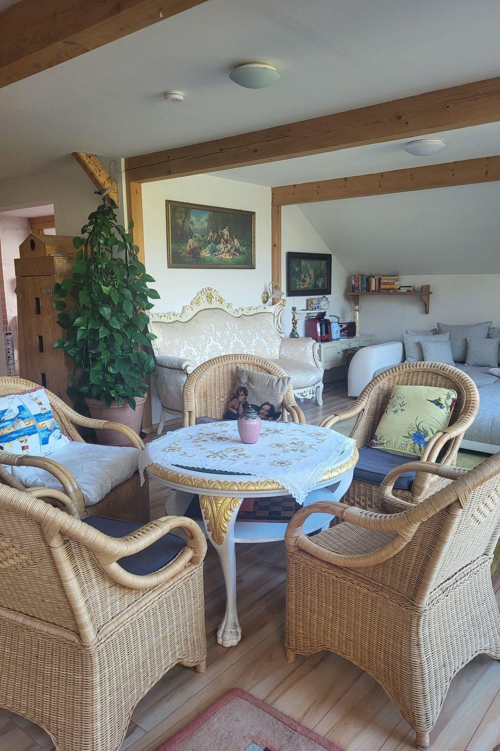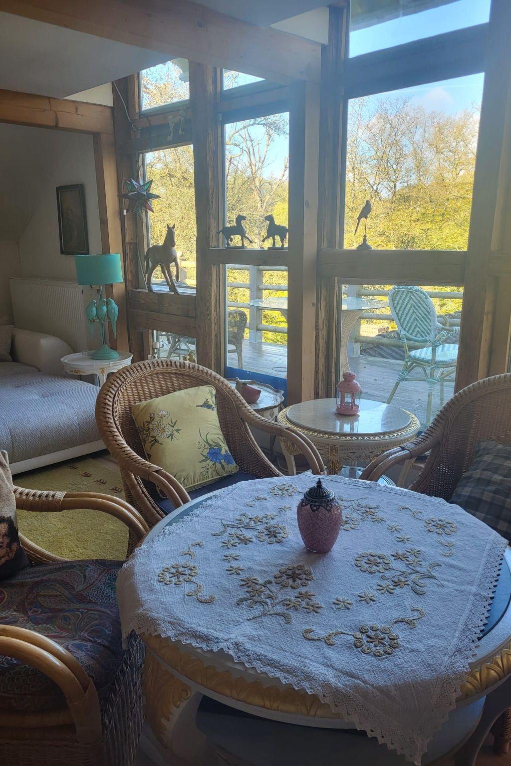 The outdoor area of our holiday home is truly a delight. While the spacious garden is not officially part of the rental property, it is nevertheless available for shared use. An ambience that invites you to play, relax or enjoy outdoor activities together. The grazing animals behind the house - a pony and five goats, which are happy to be stroked and fed with bread - are a particular delight, although guests should not enter the immediate area.