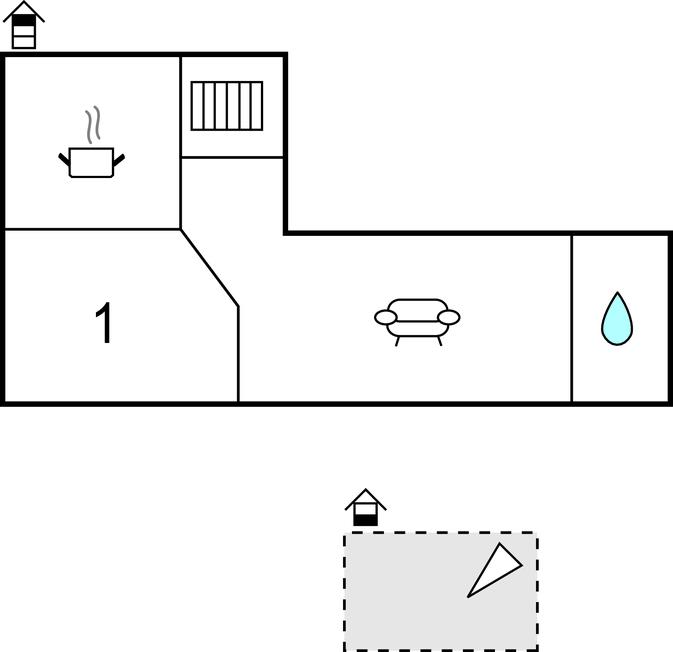 I haven er der en plads for feriegæsterne som husejerne har stillet til rådighed til jeres grillaftener og hyggestunder i det fri. Lejligheden ligger på ejendommens anden sal, som der er adgang til via en stejl trappe.