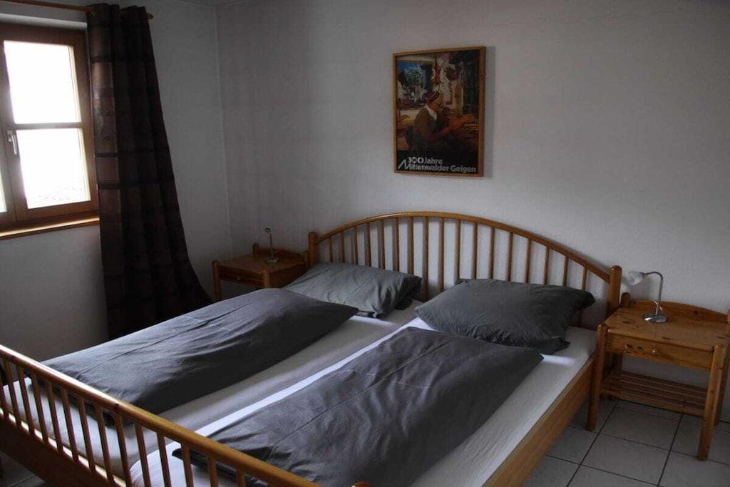 Komfortabel og rummelig ferielejlighed på cirka 104 kvm i Mittenwald med 3 soveværelser, ideel til 9 feriegæster. Der er 2 badeværelser/brusere med toiletter. Køkkenet er udstyret med køleskab/fryser, 4-brænder keramisk kogeplade med ovn og mikrobølgeovn samt opvaskemaskine. Stuen er møbleret med en hjørnesofa i læder, LED-tv og kakkelovn. Satellit-tv og Wi-Fi er også tilgængelige. Balkonen tilbyder en storslået udsigt over Karwendel-bjergene.