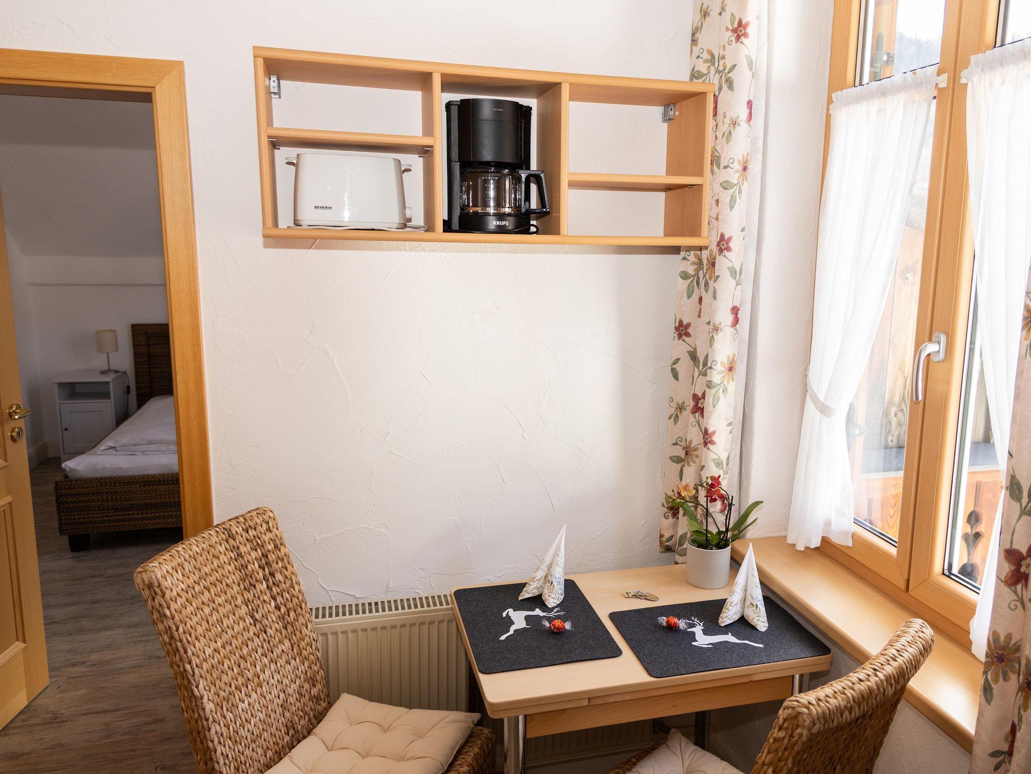 Zu verschiedenen Einkaufsmöglichkeiten, zum Bahnhof und zum kostenlosen Gästewander- und Skibus, der Sie in die schönsten Wandergebiete und Loipen der Umgebung und ins Skigebiet Kranzberg bringt, sind es nur wenige Gehminuten.